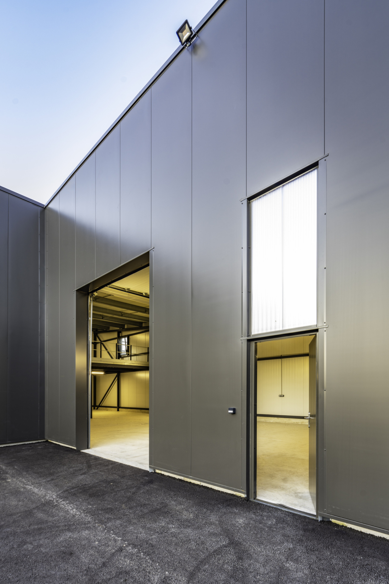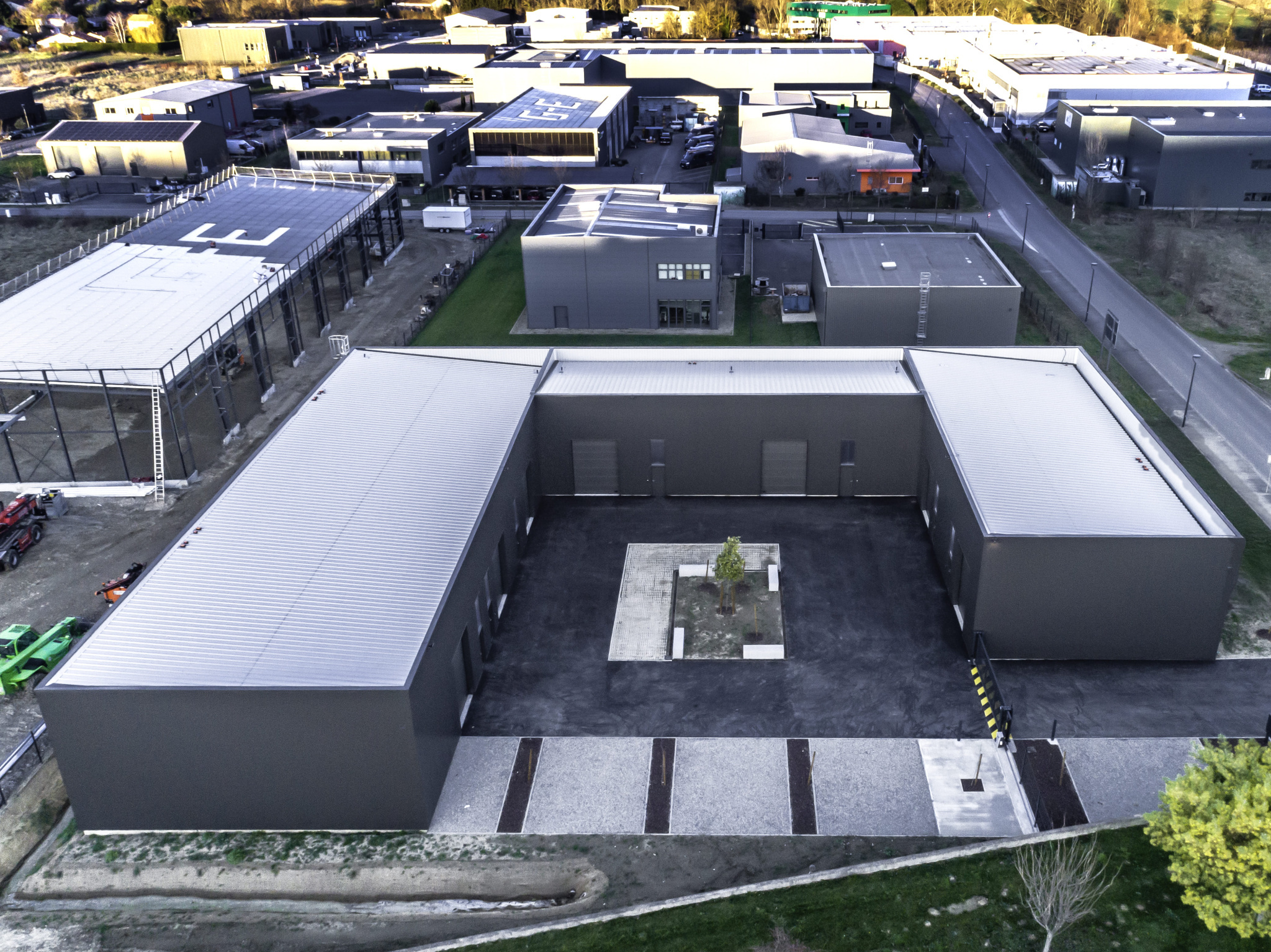 Batiment en structure métallique avec isolation en panneaux sandwich, Toiture adaptée pour panneaux photovoltaïques