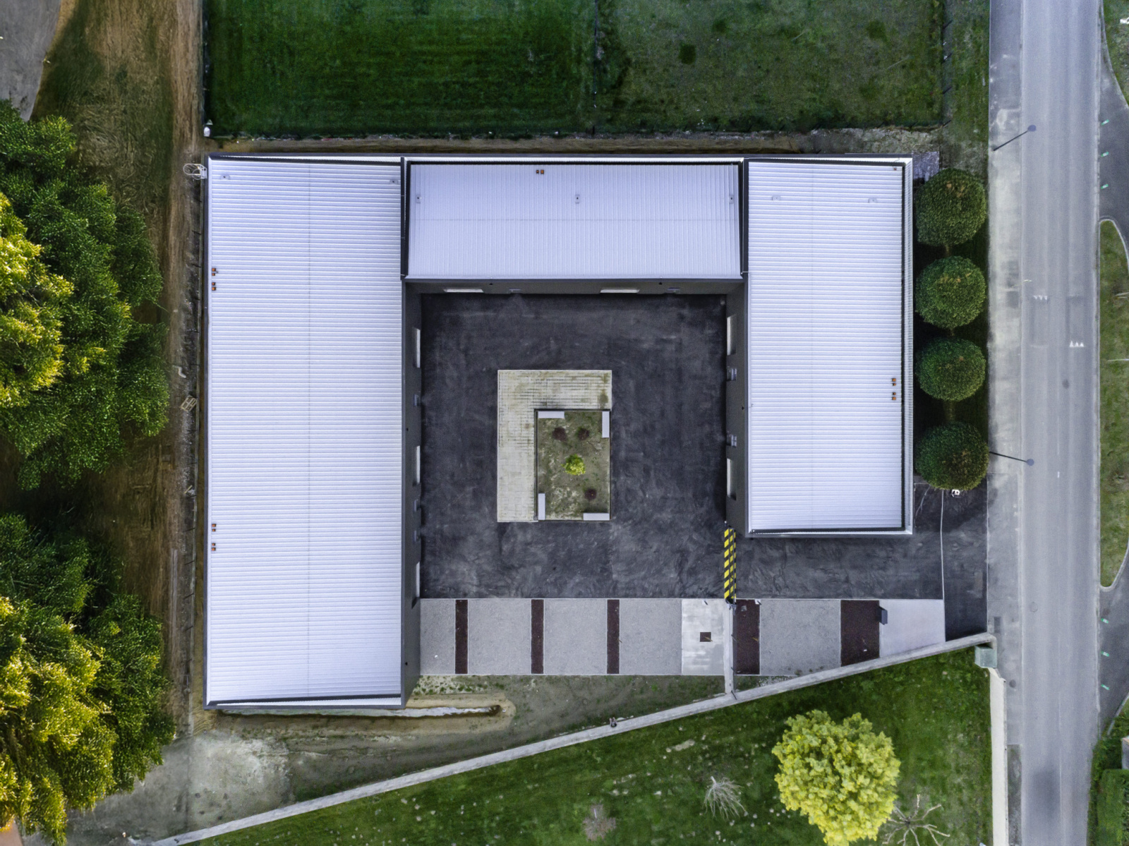 Batiment en structure métallique avec isolation en panneaux sandwich, Toiture adaptée pour panneaux photovoltaïques