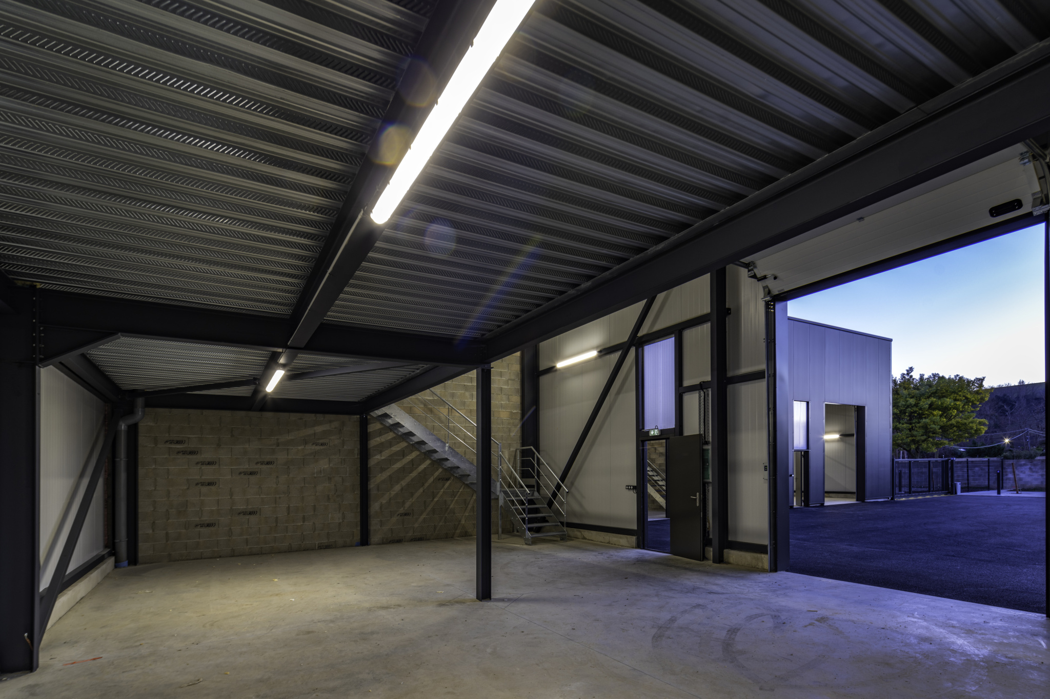 Batiment en structure métallique avec isolation en panneaux sandwich, Toiture adaptée pour panneaux photovoltaïques