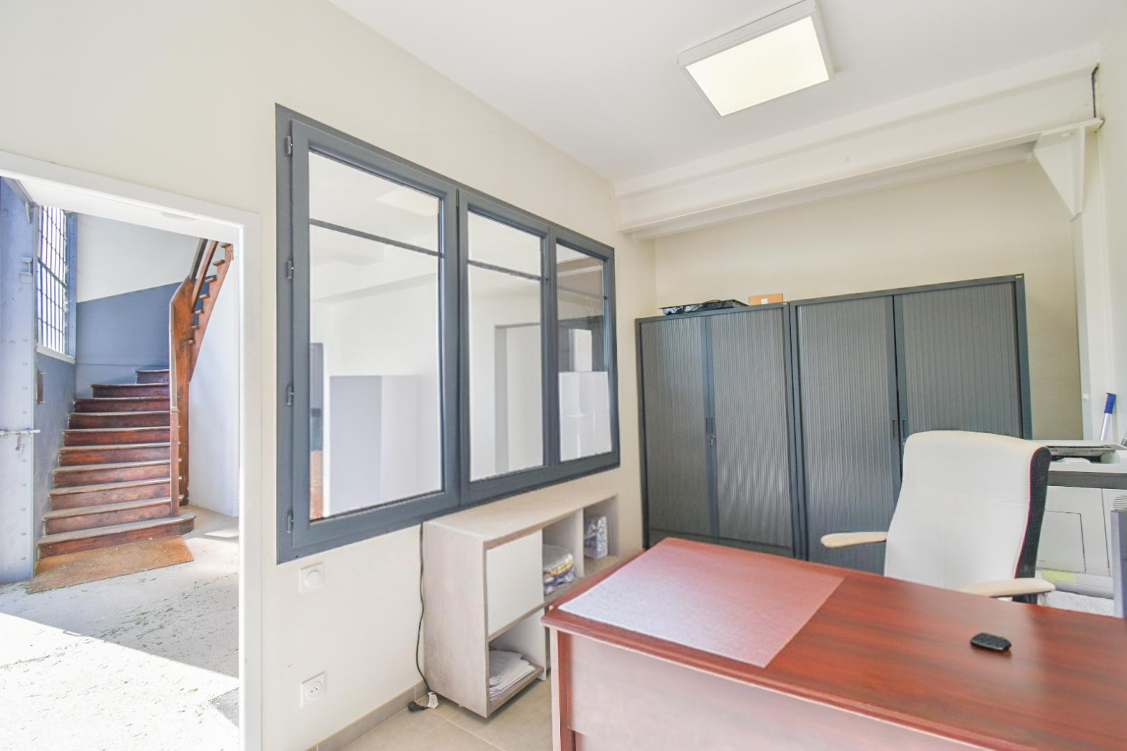 Au premier étage, vous trouverez plusieurs salles de réunion, des bureaux et cuisine aménagée.