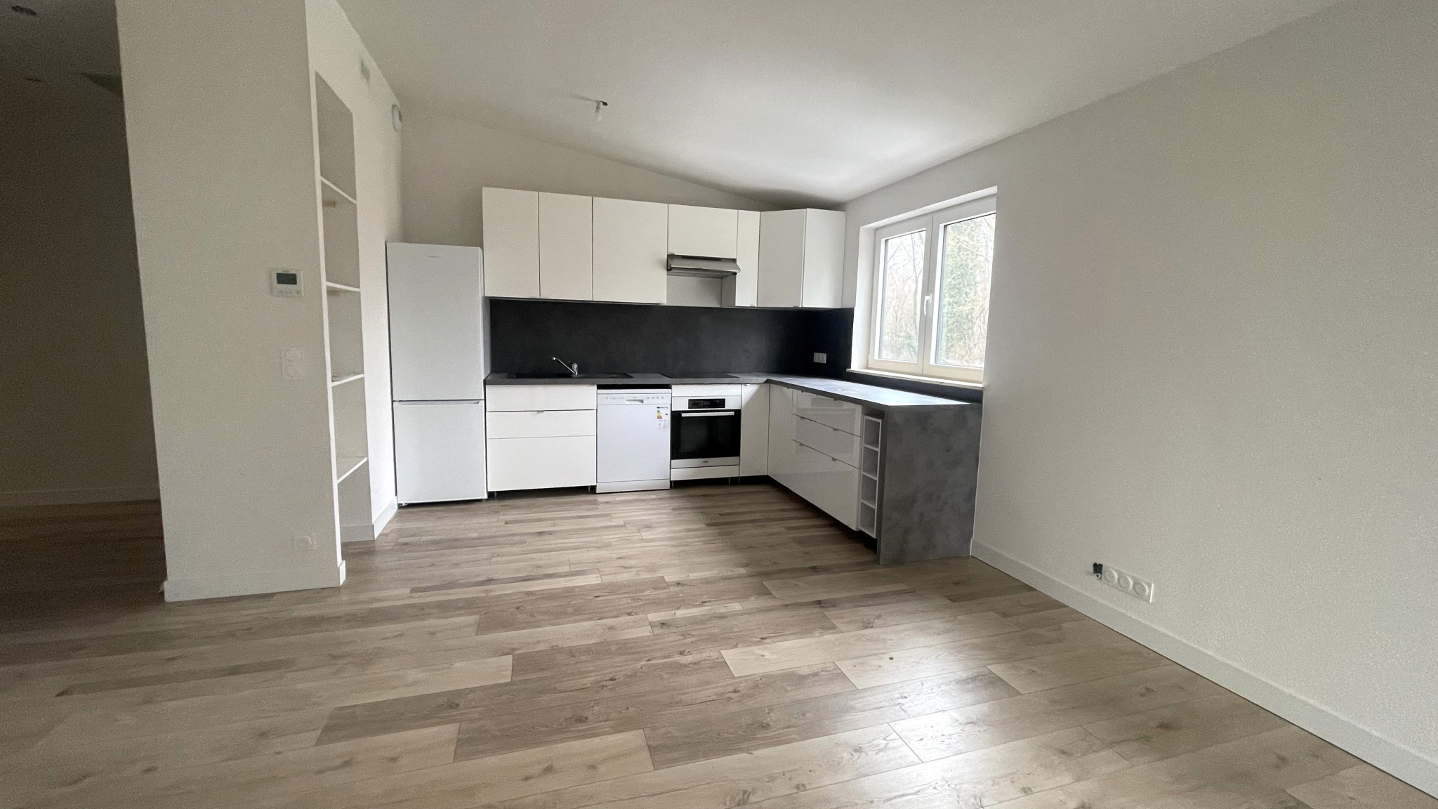La cuisine est équipée d’un four, d’une hotte, d’une plaque de cuisson et d’un lave-vaisselle. Branchement pour lave-linge prévu.