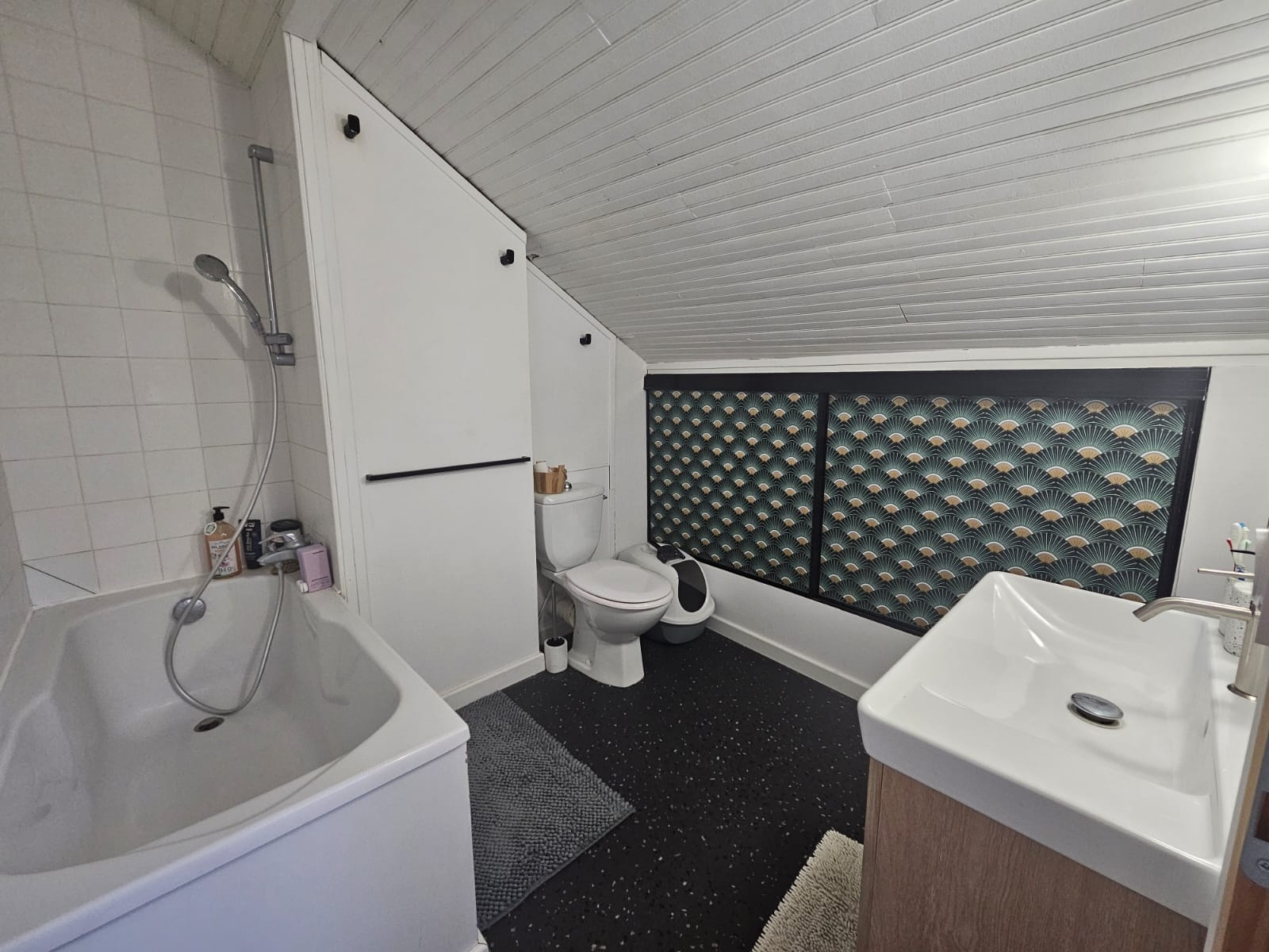 Situé au 3ème étage sans ascenseur, ce duplex de 100m² au sol vous offrira un bel espace de vie de 40m² avec cuisine, une première chambre, salle d'eau et un wc séparé. A l'étage, un spacieux espace offre 2 chambres et une salle de bain/wc.