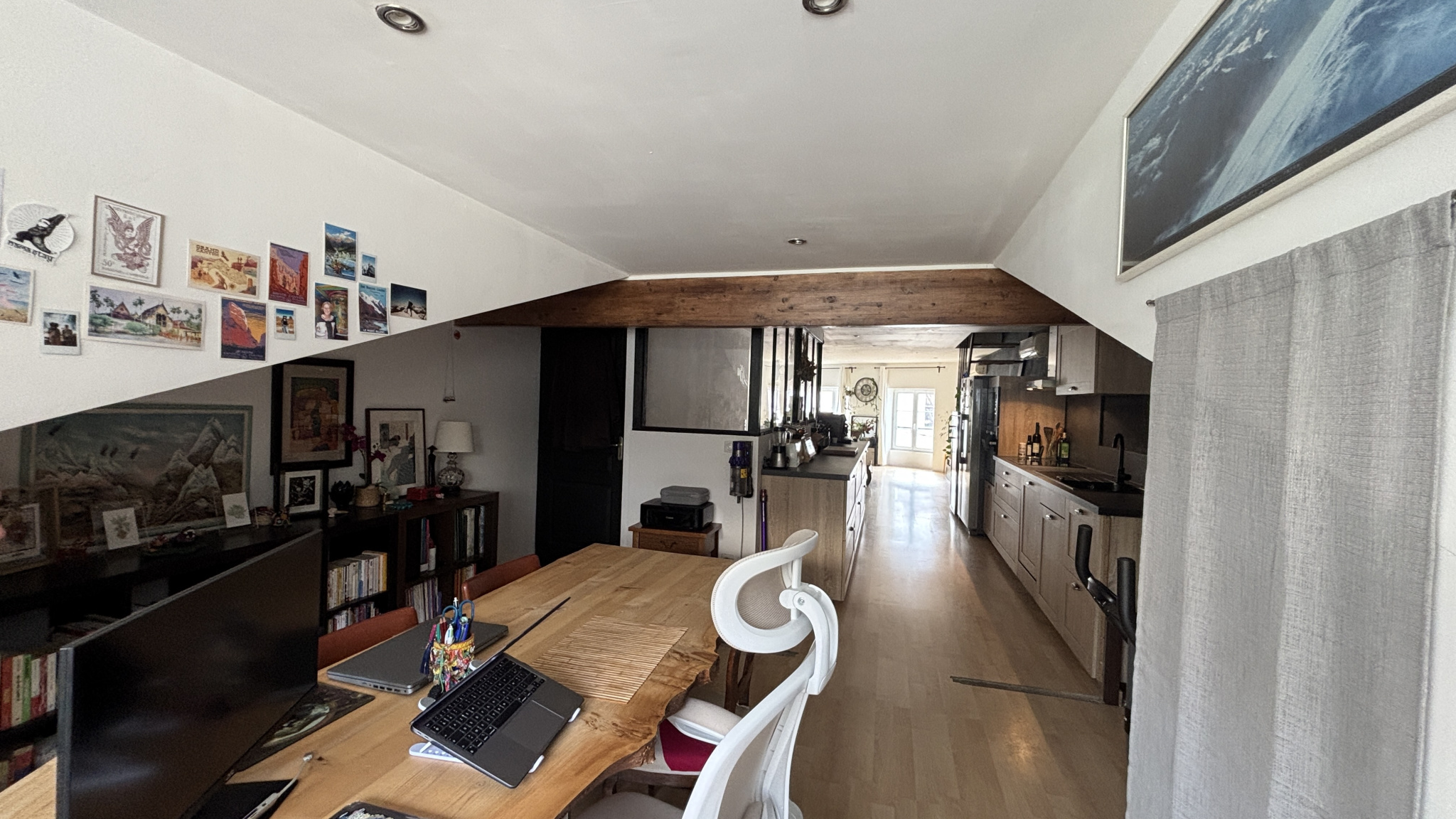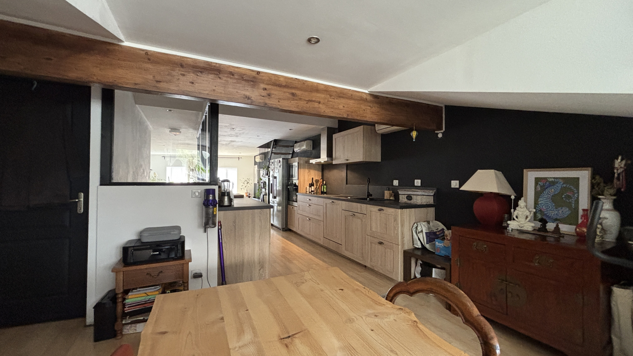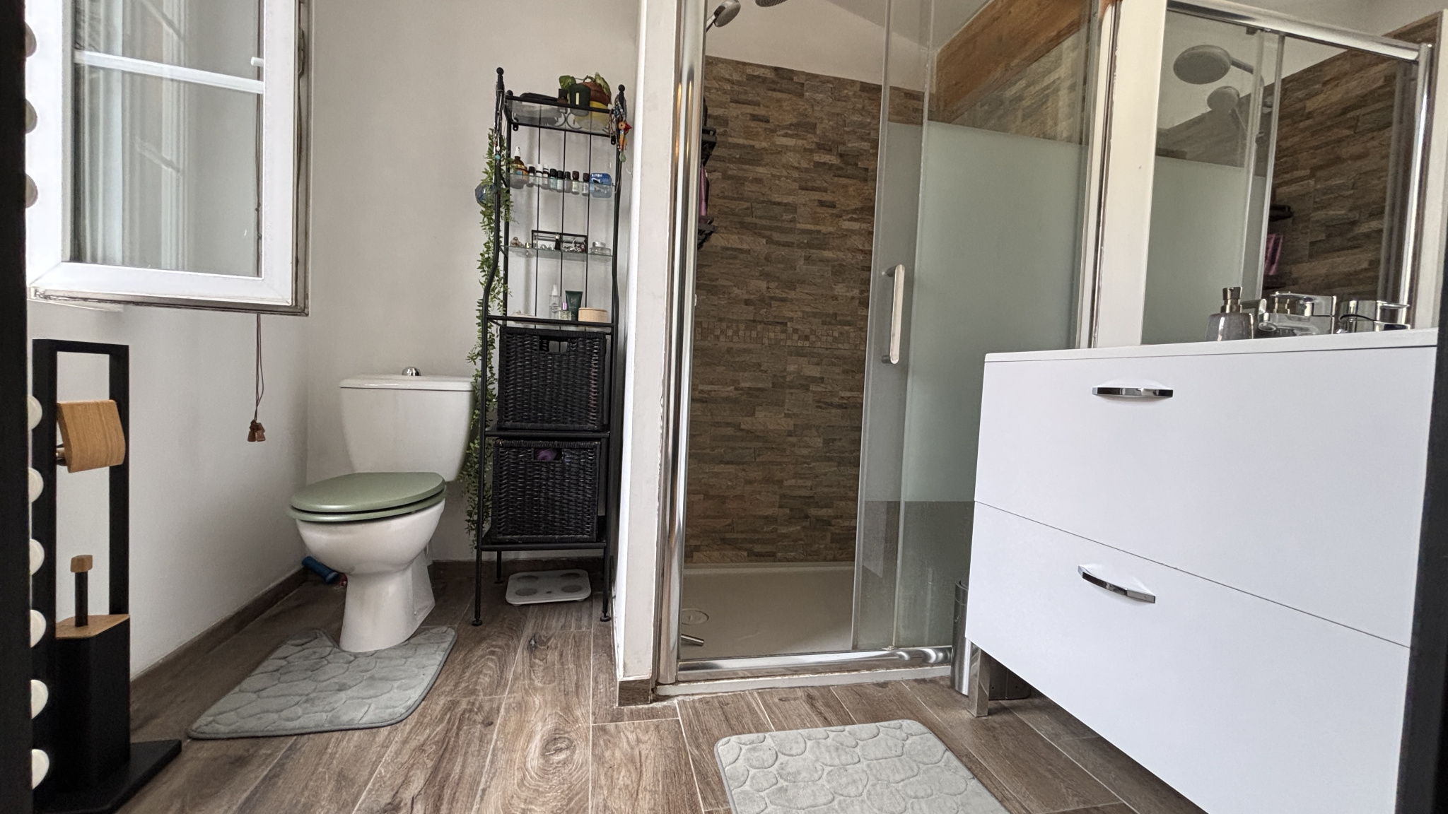 Au permier niveau, vous profiterez d'une agréable pièce de vie composée d'un salon, d'une salle à manger et d'une cuisine entièrement aménagée et équipée, ainsi qu'un WC indépendant, des rangements.