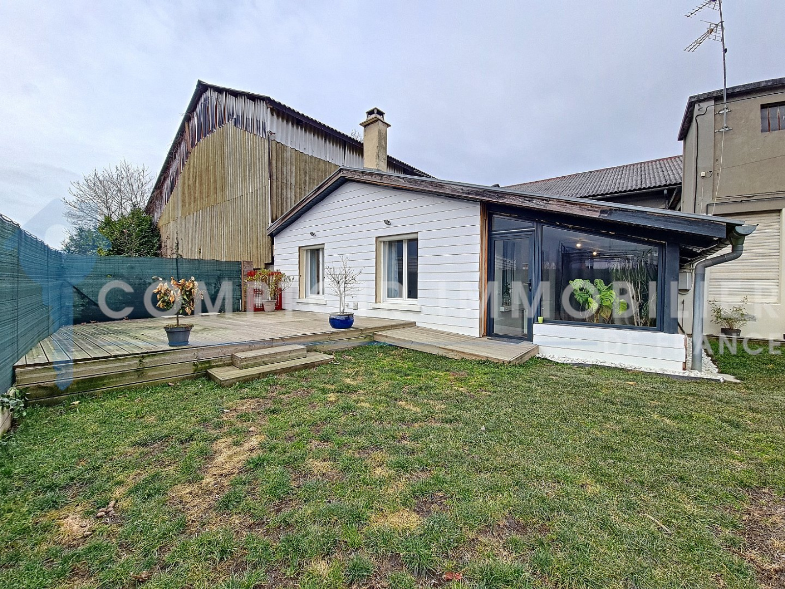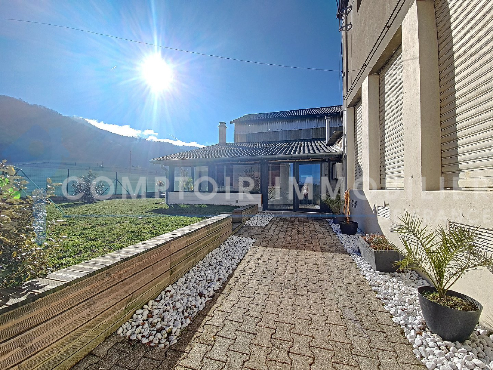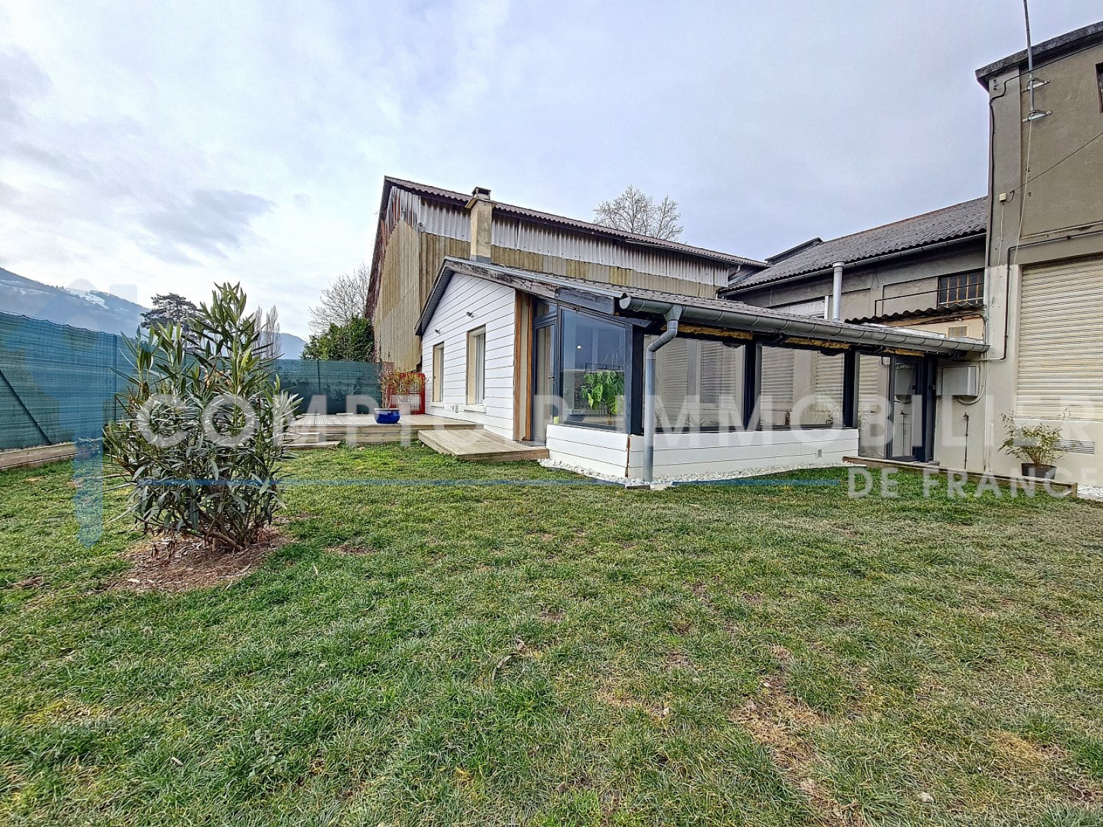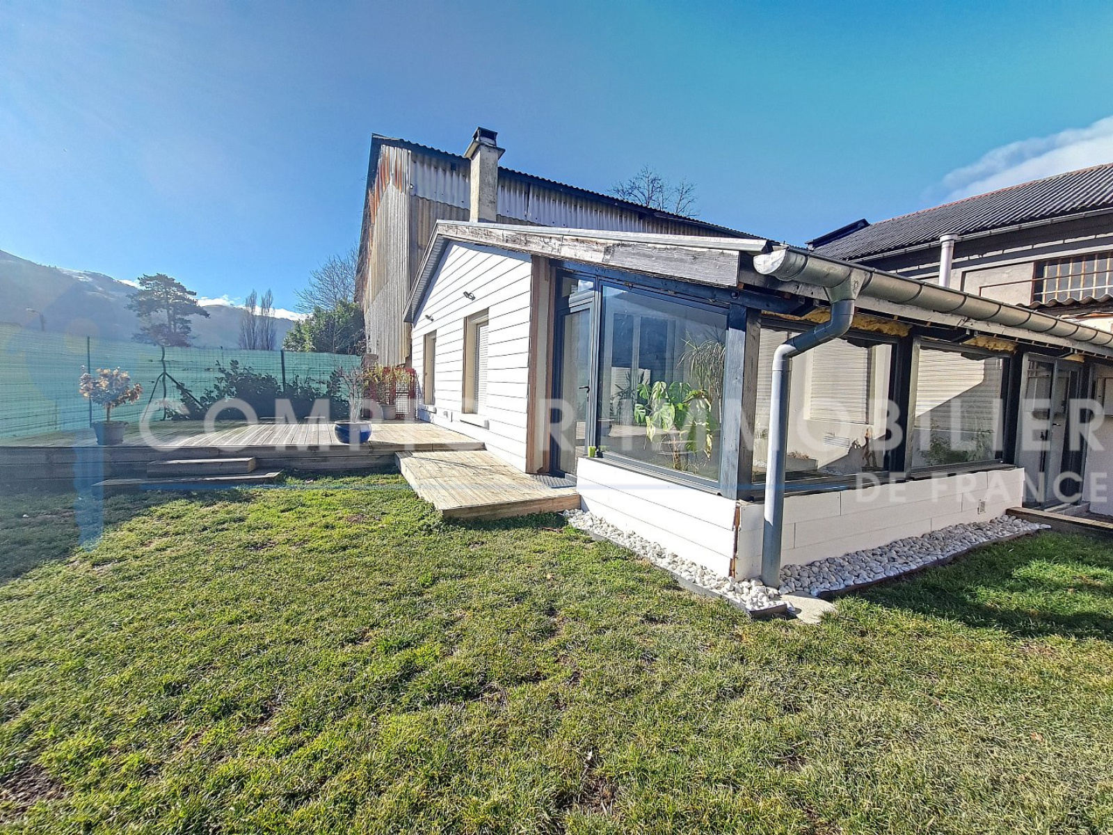 Maison en Exclusivité Comptoir Immobilier de France Située à DOMENE dans la Vallée du Grésivaudan à 10min de Grenoble et Crolles et 30min de Chambéry (accès direct à l'autoroute) en retrait de la route au 21 rue Casimir Julhiet proche des commodités. Venez découvrir cette charmante maison atypique entièrement rénovée en 2019 selon les normes RT2012, exposée Est de 73m² habitables sur un terrain clos de 290m² offrant une vue dégagée sur la Chaine de Belledonne et comprenant une grande terrasse ainsi qu'un abri jardin. Construite de plain pied dans les années 1940, elle se compose d'une cuisine équipée ouverte sur le séjour d'environ 28m², d'une véranda entièrement vitrée de 17m², de deux chambres de 10 et 11m² ainsi qu'une salle de douche avec WC. Deux places de parking privé complètent ce bien / Taxe Foncière: 980€ Voie ferrée à proximité (TER). =>Visite virtuelle disponible sur demande. CIF GRESIVAUDAN - Titouan NICOLAS - 06 67 58 83 30 - Plus d'informations sur cif-immo.com (réf. 14277) -- Informations CORONAVIRUS : Nos visites s'effectueront avec la mise en place d'un protocole sanitaire, notamment avec le port d'un masque et dans le respect des gestes barrières, afin d'assurer la protection de tous. -- Honoraires charge vendeur