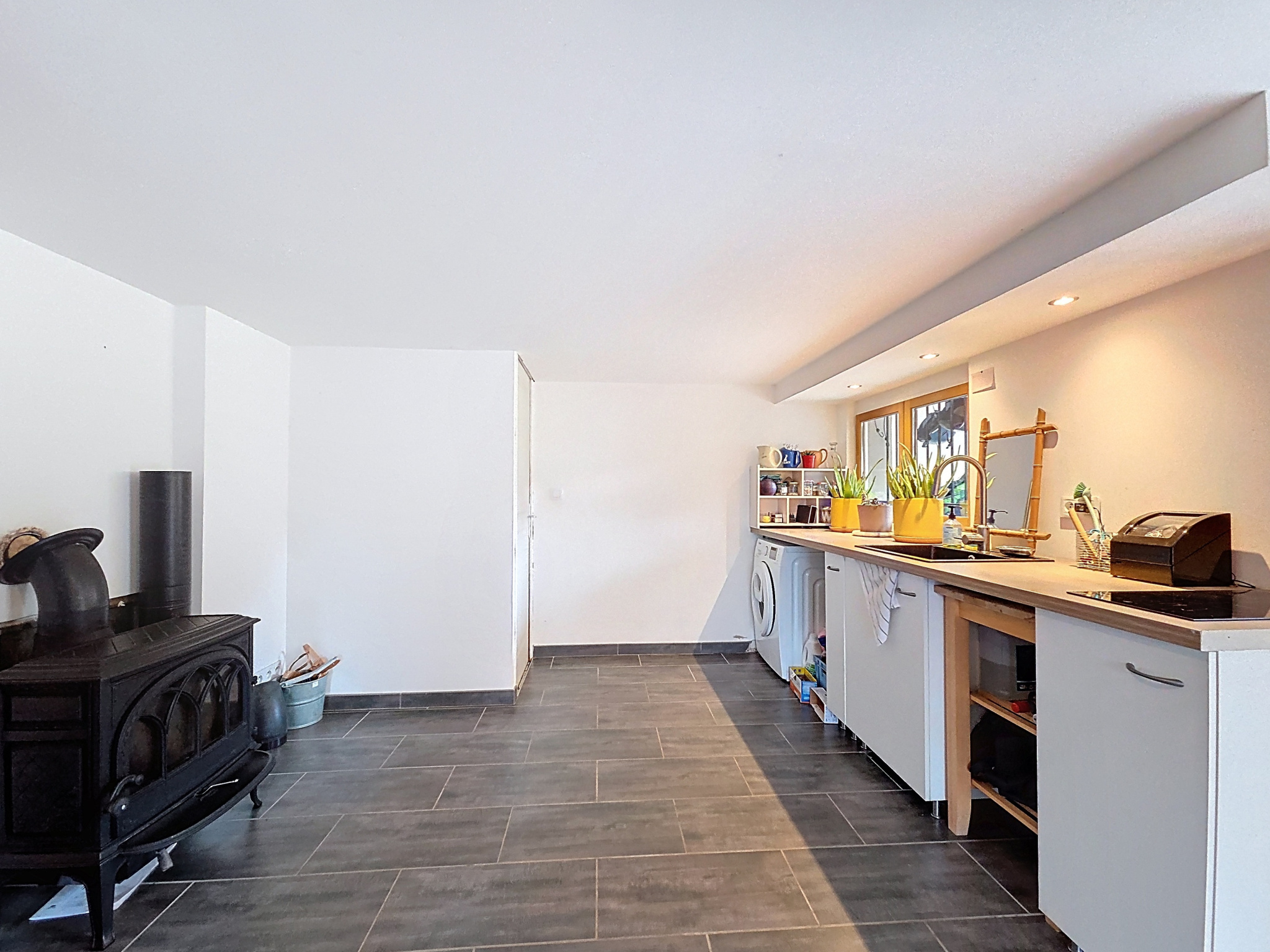 Une chaufferie/buanderie, une cave et un garage à vélo/moto complète le RDC.