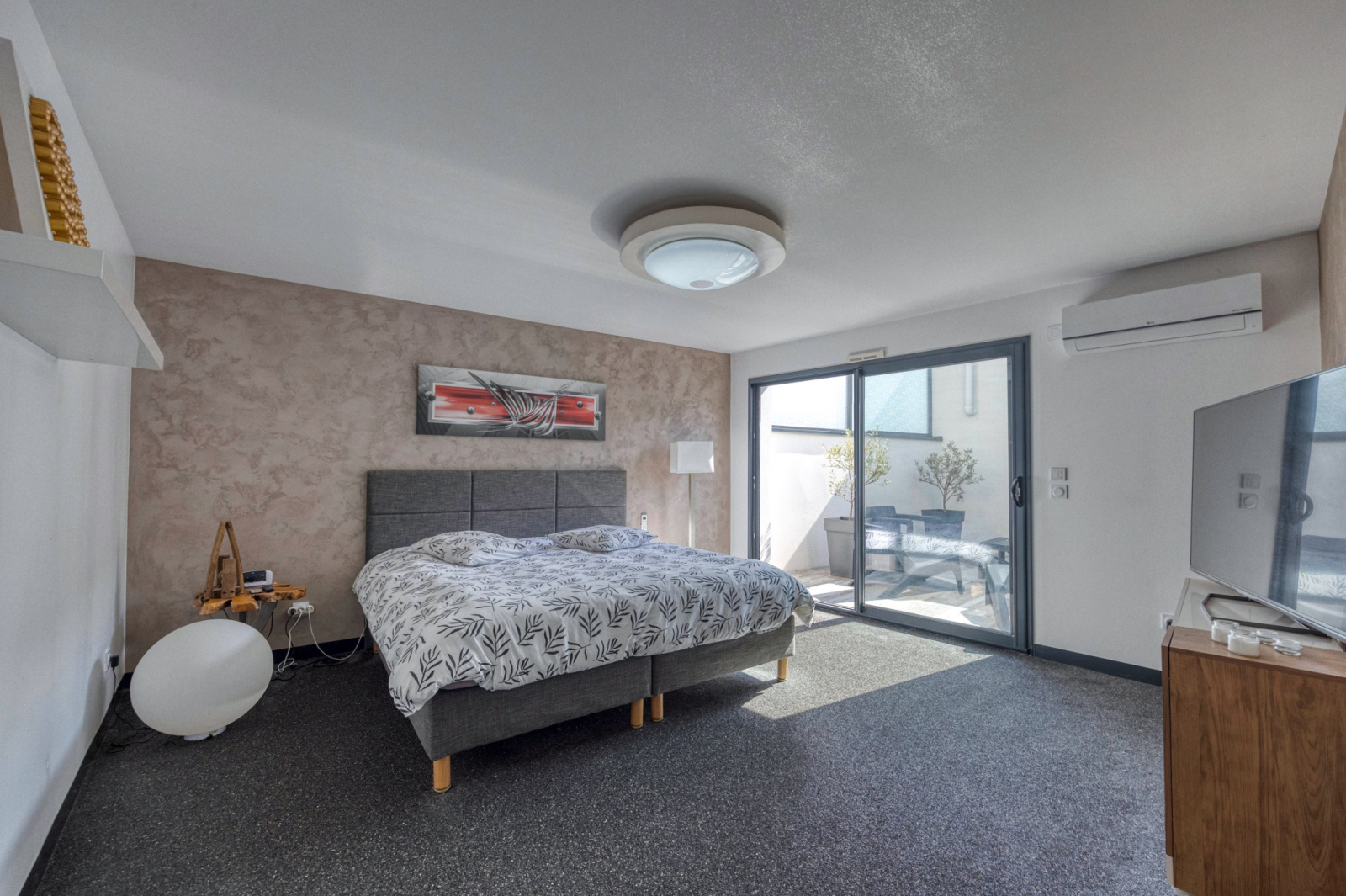 La suite parentale fait plus de 25 m2 avec salle d'eau, dressing et une grande baie vitrée avec accès direct sur le Patio