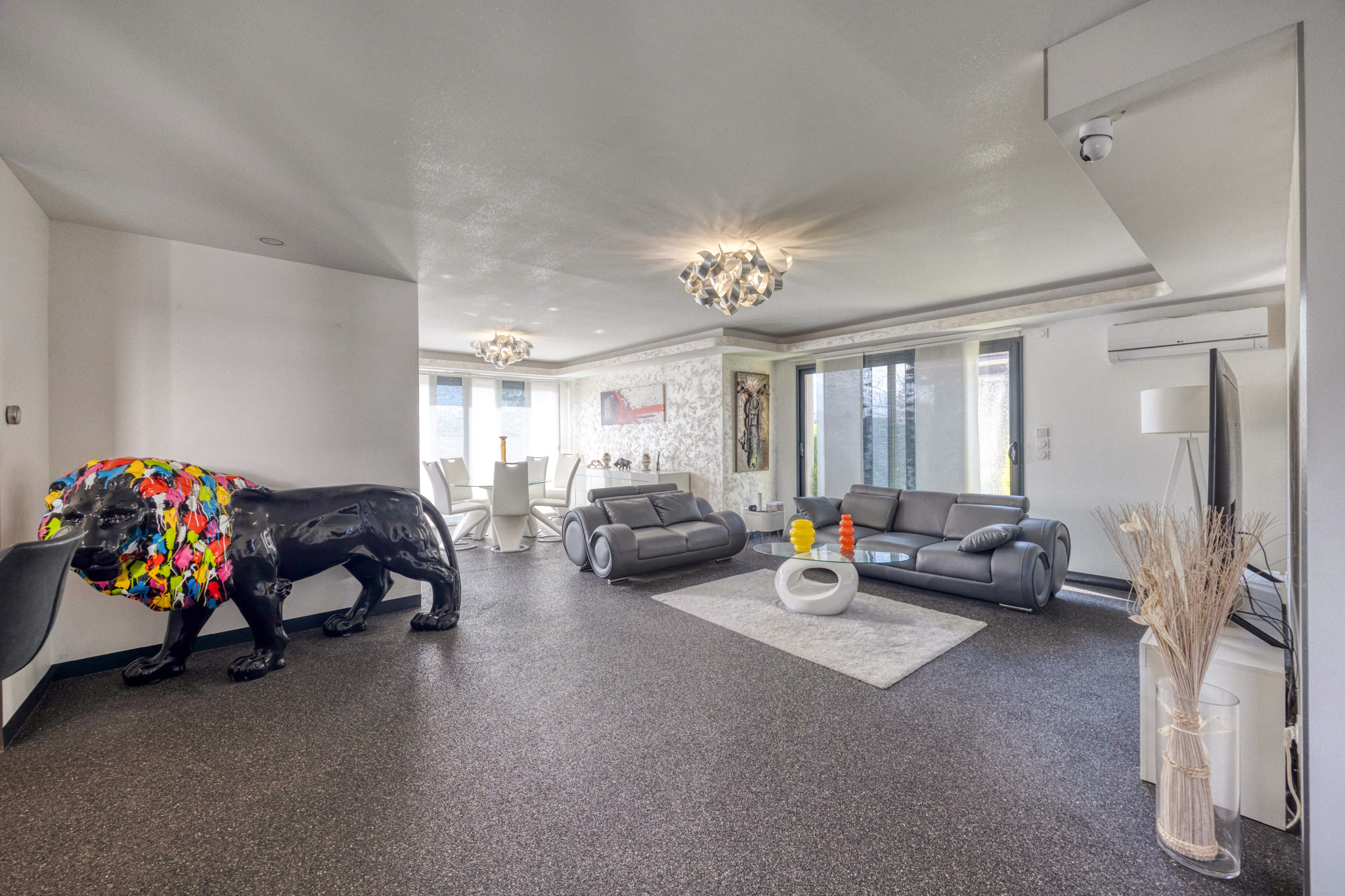 De belles prestations : Sols en résine dans toute la maison, chaudière individuelle au gaz a condensation installée en 2018, plancher chauffant, climatisation électrique par pompe a chaleur type split, volets roulants électriques avec fermeture centralisée, système d'alame intégrée , visiophone.
