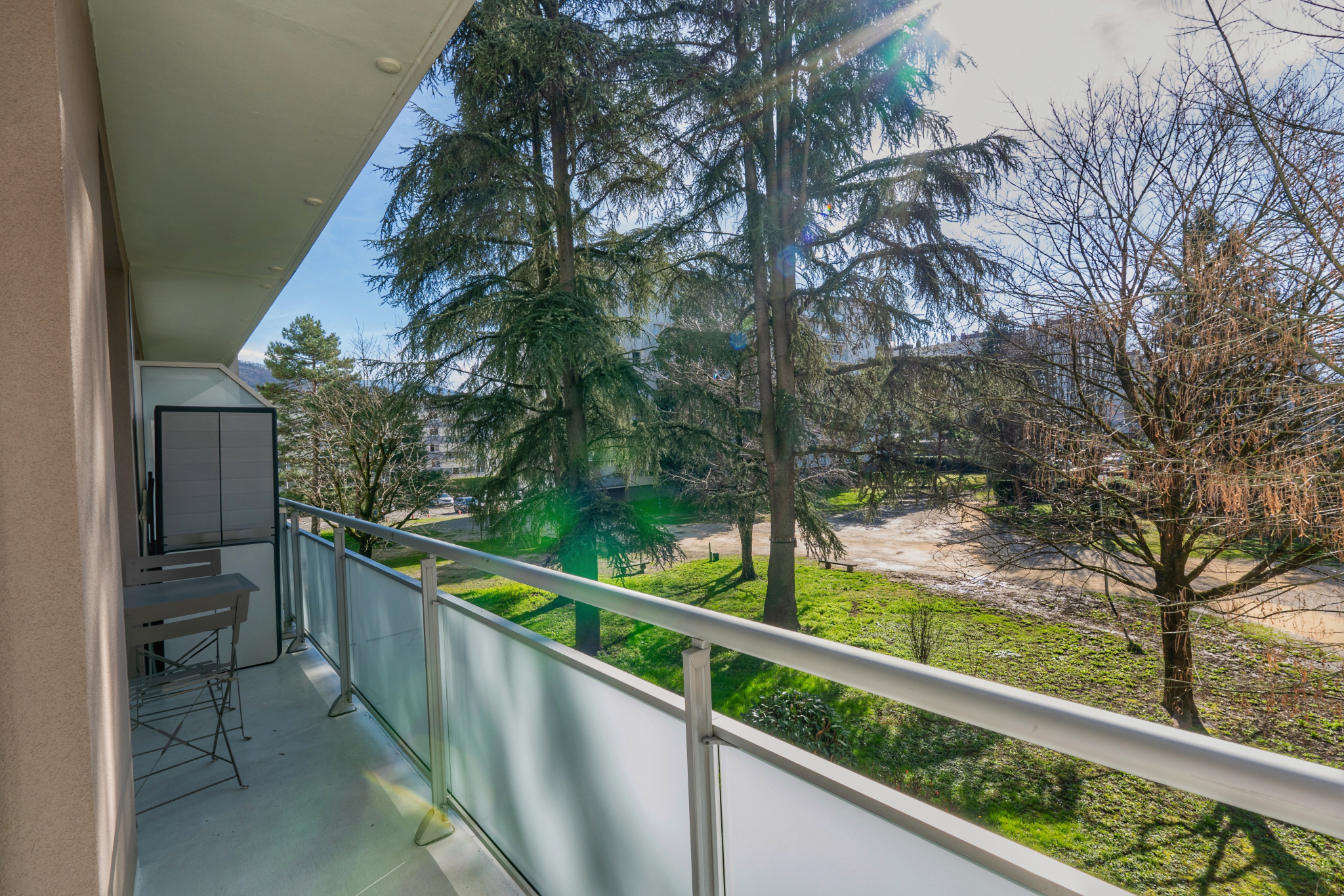 L’appartement se compose d’une cuisine équipée avec buanderie, ouverte sur un vaste séjour double baigné de lumière, de deux chambres confortables, d’une belle salle de bains avec douche à l'italienne, d’un WC indépendant, ainsi que d’un balcon véritable prolongement de l’espace de vie. Celui-ci offre une vue dégagée sur les espaces verts de la copropriété, dans un environnement calme et agréable.