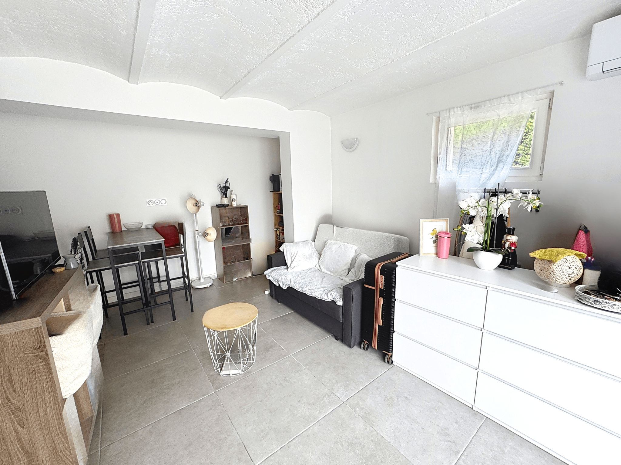 Le studio se compose d'une pièce de vie avec un coin kitchenette équipée et d'une salle de bains fonctionnelle avec douche et WC ainsi que d'un jardin privatif de 14m² à clôturer . Belles prestations intérieures : Clim, double vitrage PVC, VMC... Un investissement locatif attractif, loué actuellement 420€ hors charges, pour une rentabilité brute à 6,5%. l'appartement n'est pas concerné par le plafonnement de loyer.