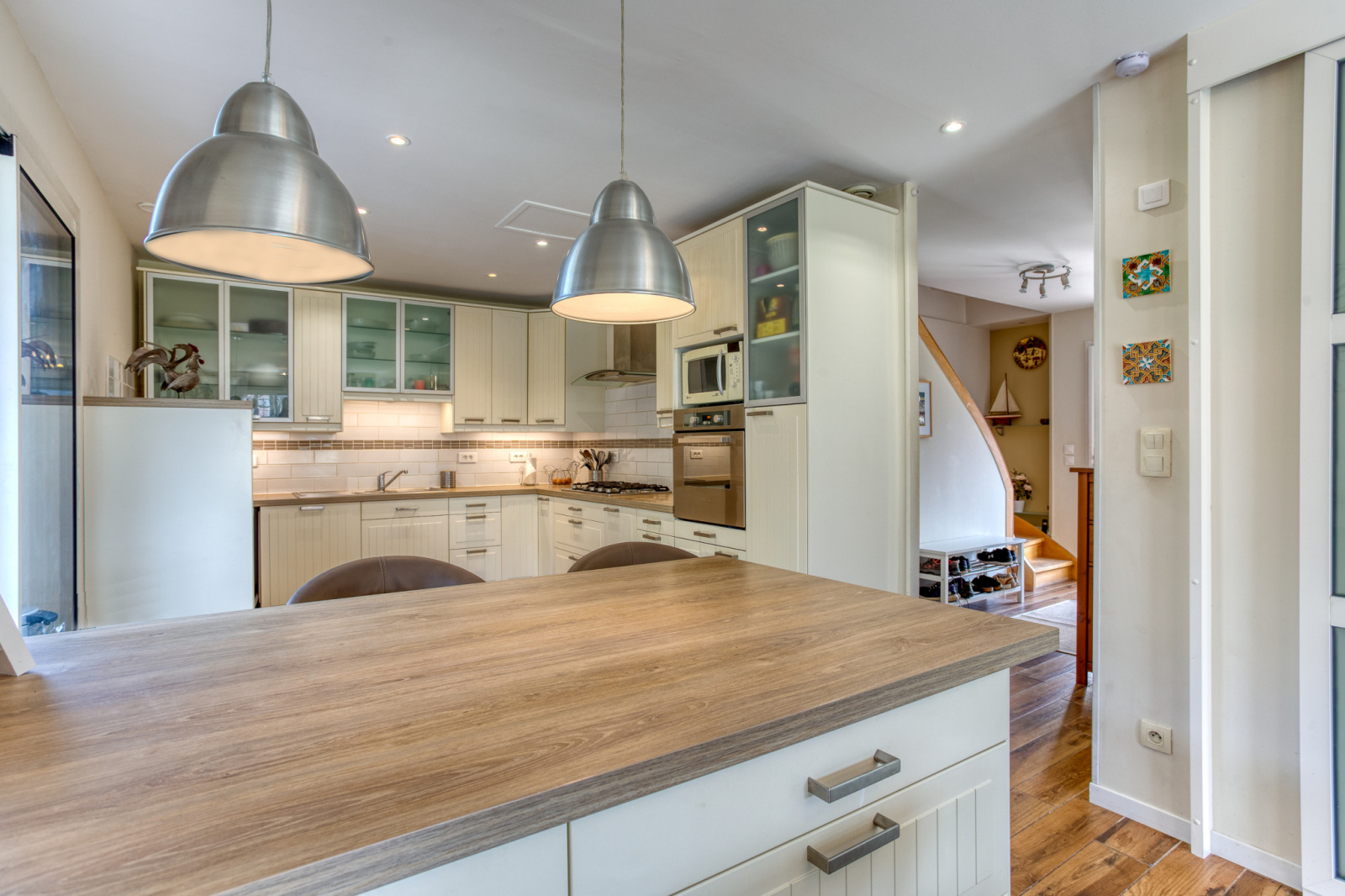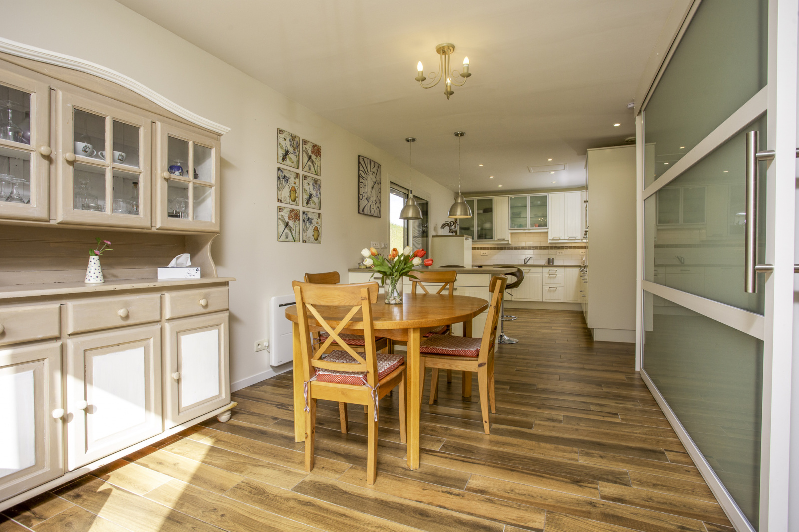 En rez de Jardin, grande entrée avec cuisine ouverte sur le salon, coin nuit séparé avec 3 chambres et salle d'eau.