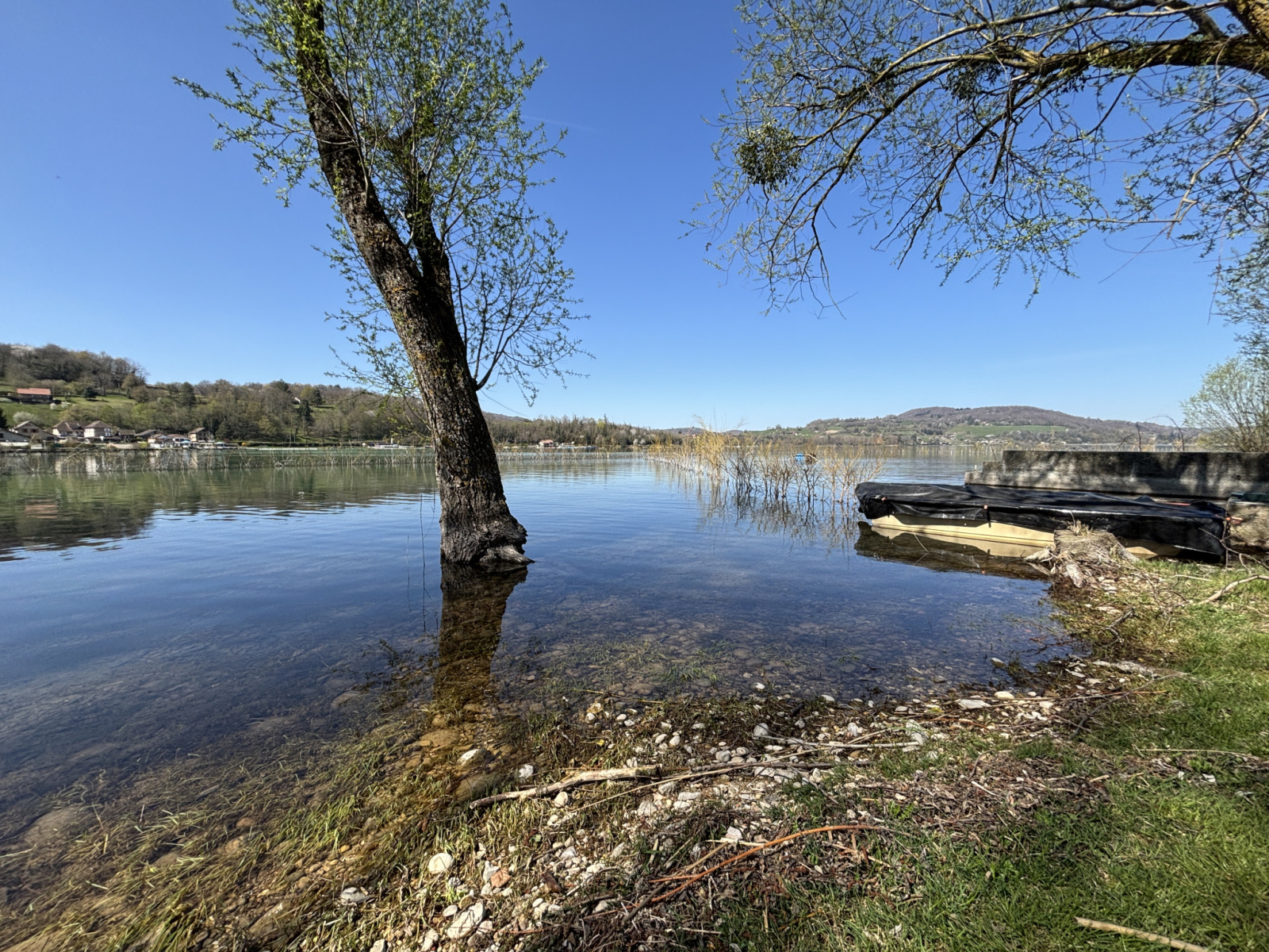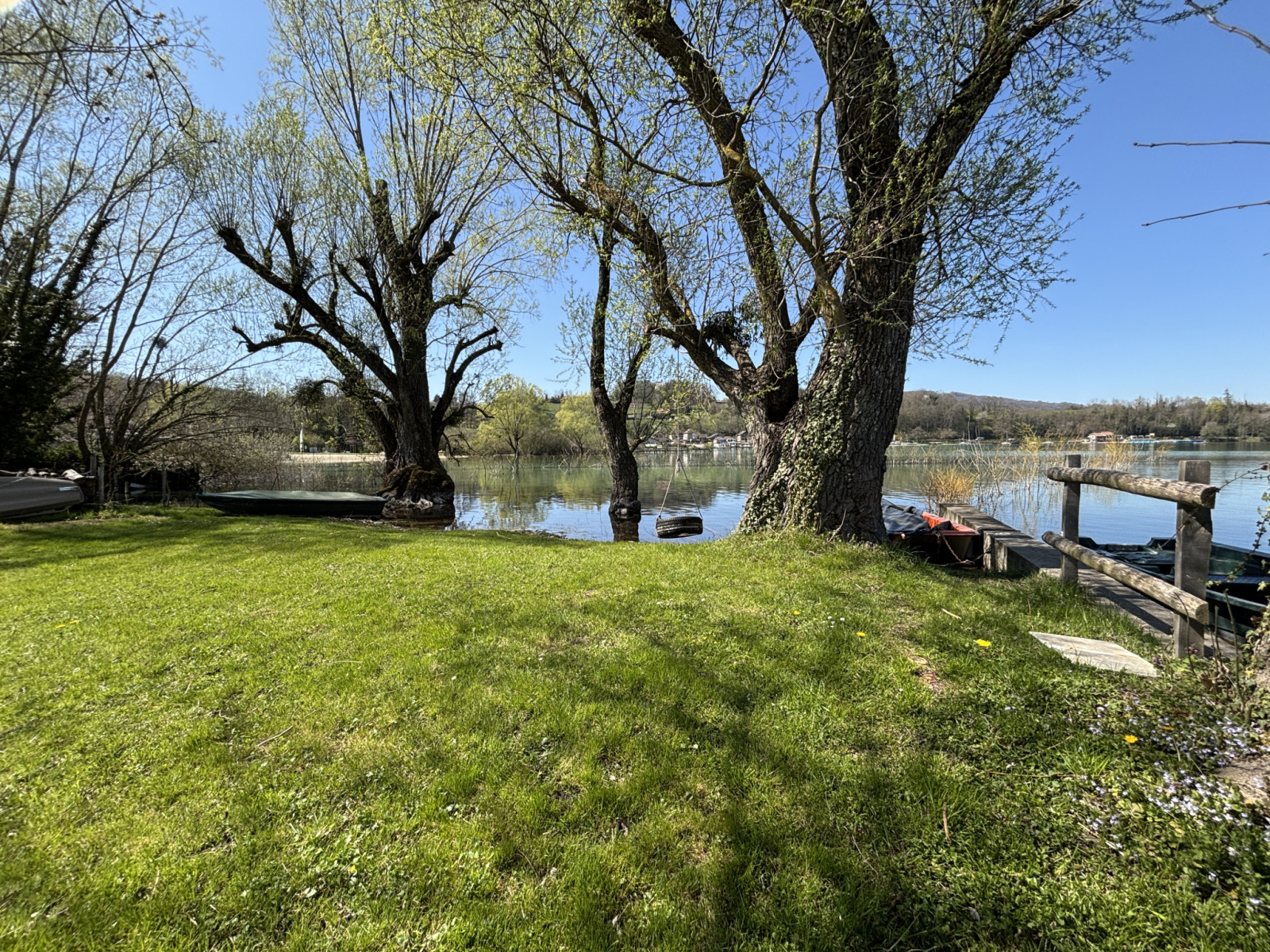 * Une plage privée avec accès au lac bleu de Charavines, son espace de verdure d'environ ainsi qu'un amarage pour un bateau (le petit plus une barque vous attend)