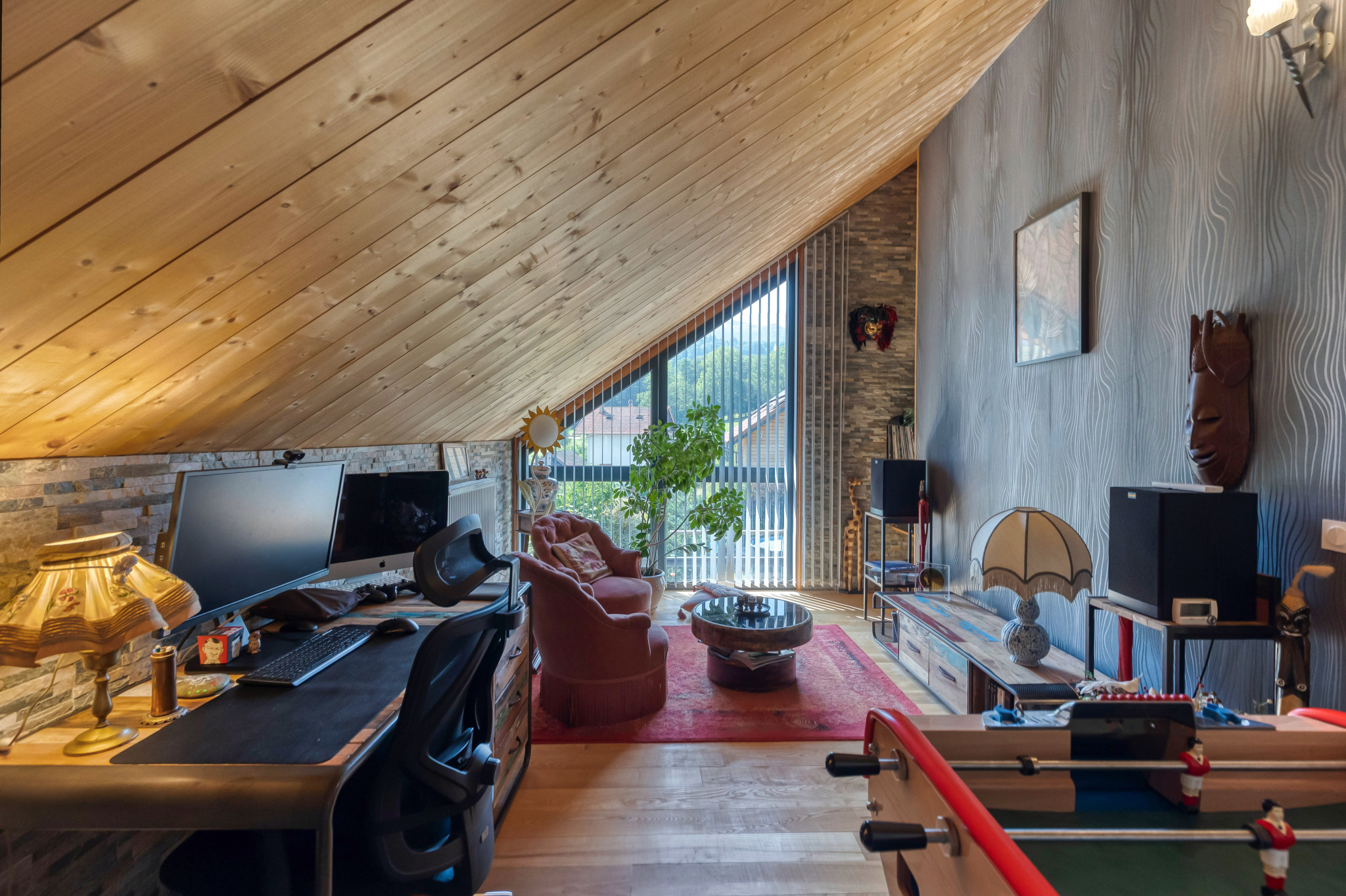 A l'étage 2 grandes chambres (possibilité de 3ième), Coin bureau et salle d'eau.