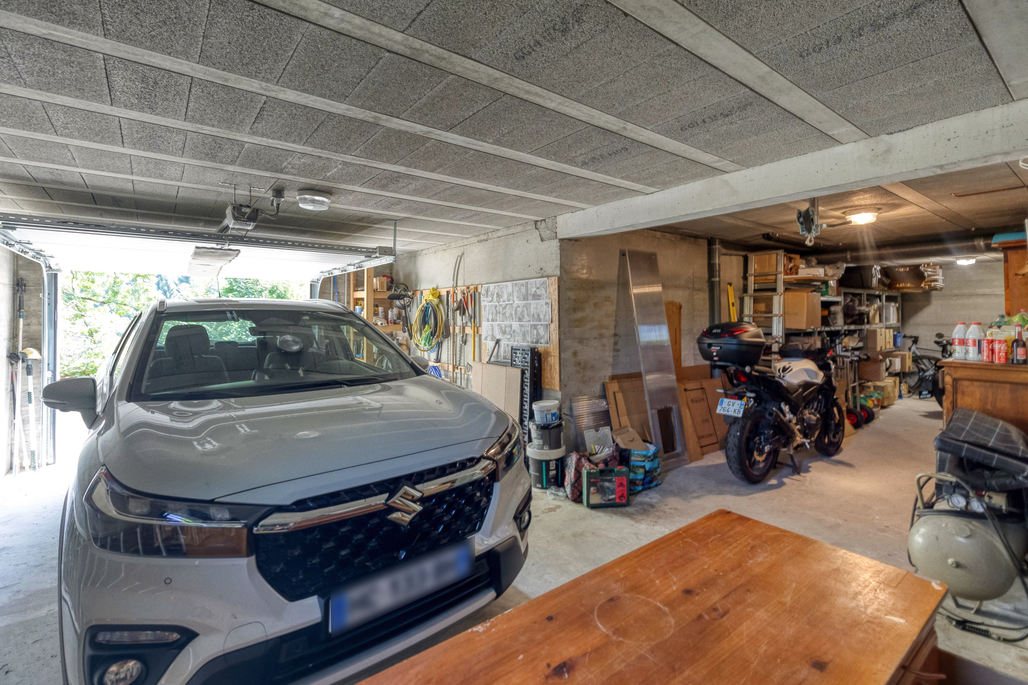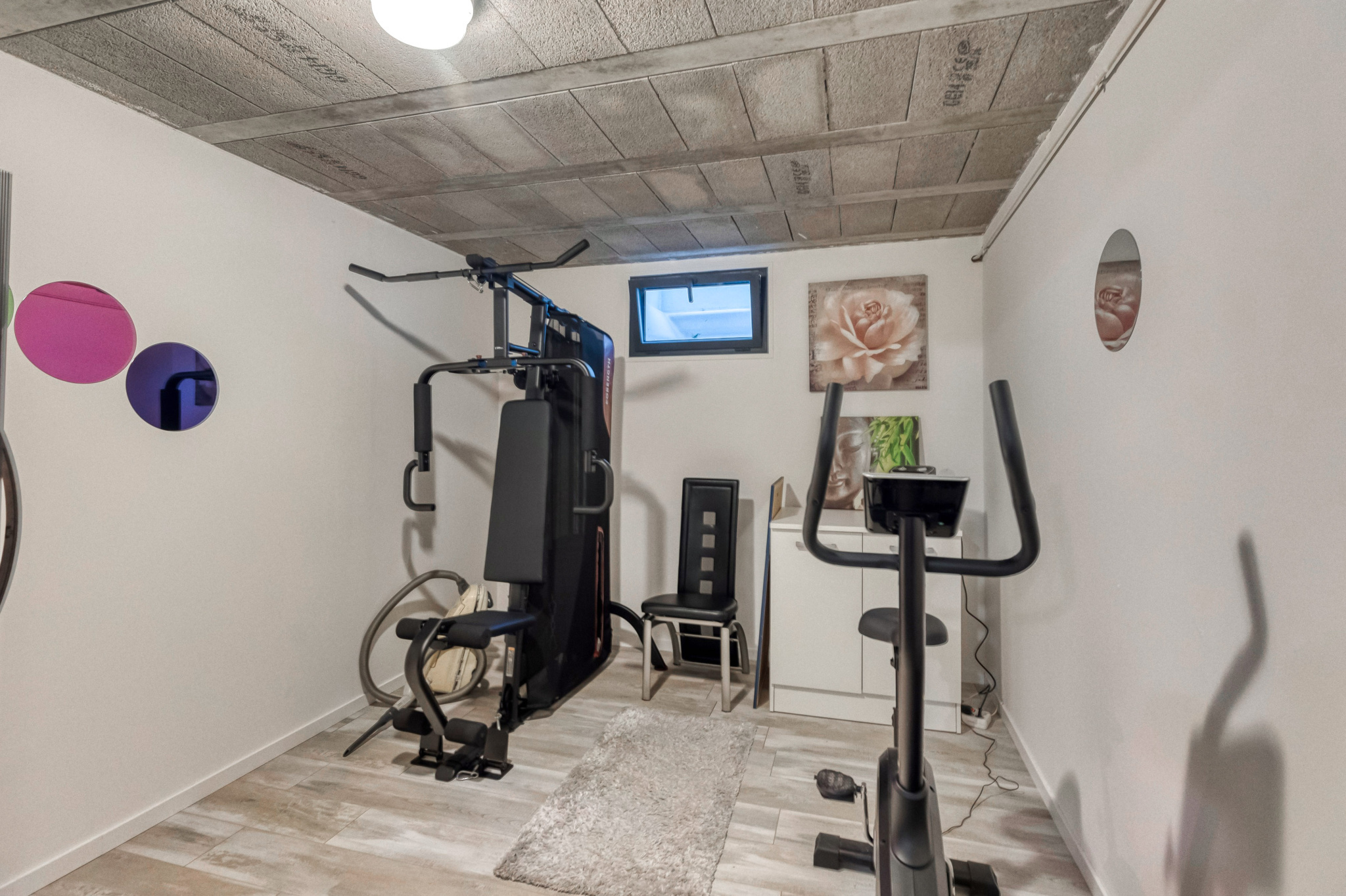 Au sous-sol 80 m² de rangement et garage avec une buanderie et une salle de sport.