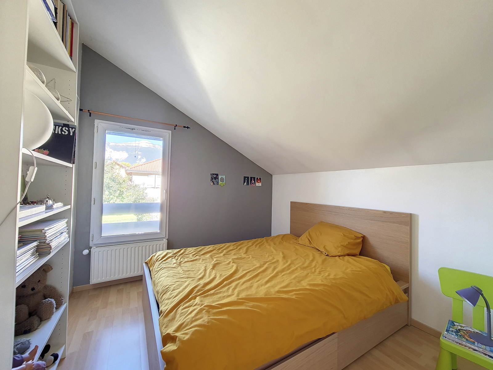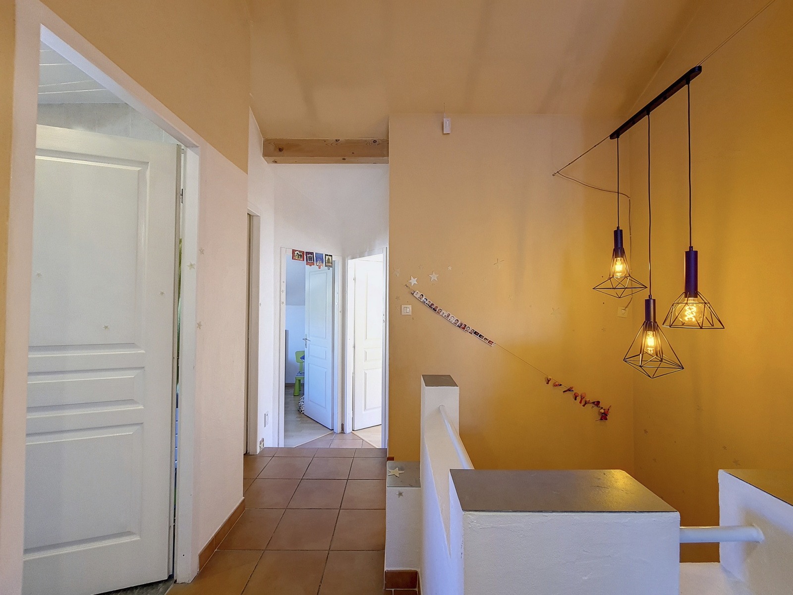 A l'étage vous profiterez du coin nuit avec 4 chambres allant de 9m² à 13m², d'une salle de bain, d'un WC séparé et d'un coin bureau ouvert avec plafond cathédrale.
