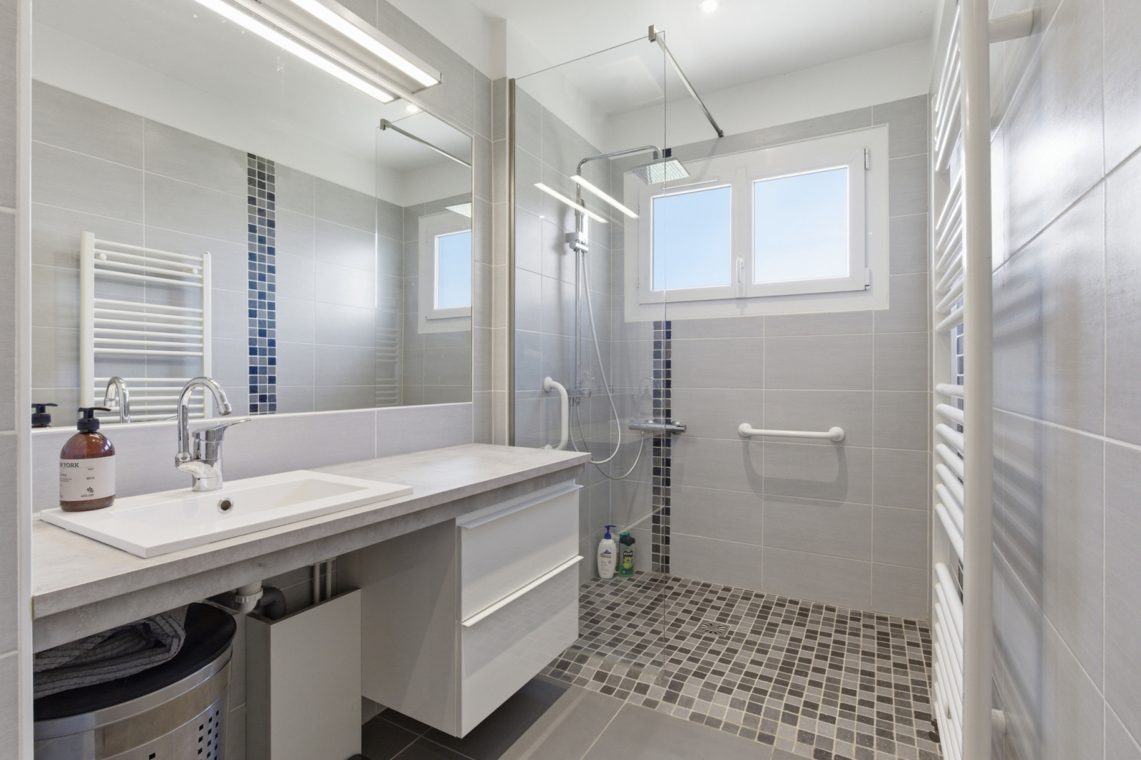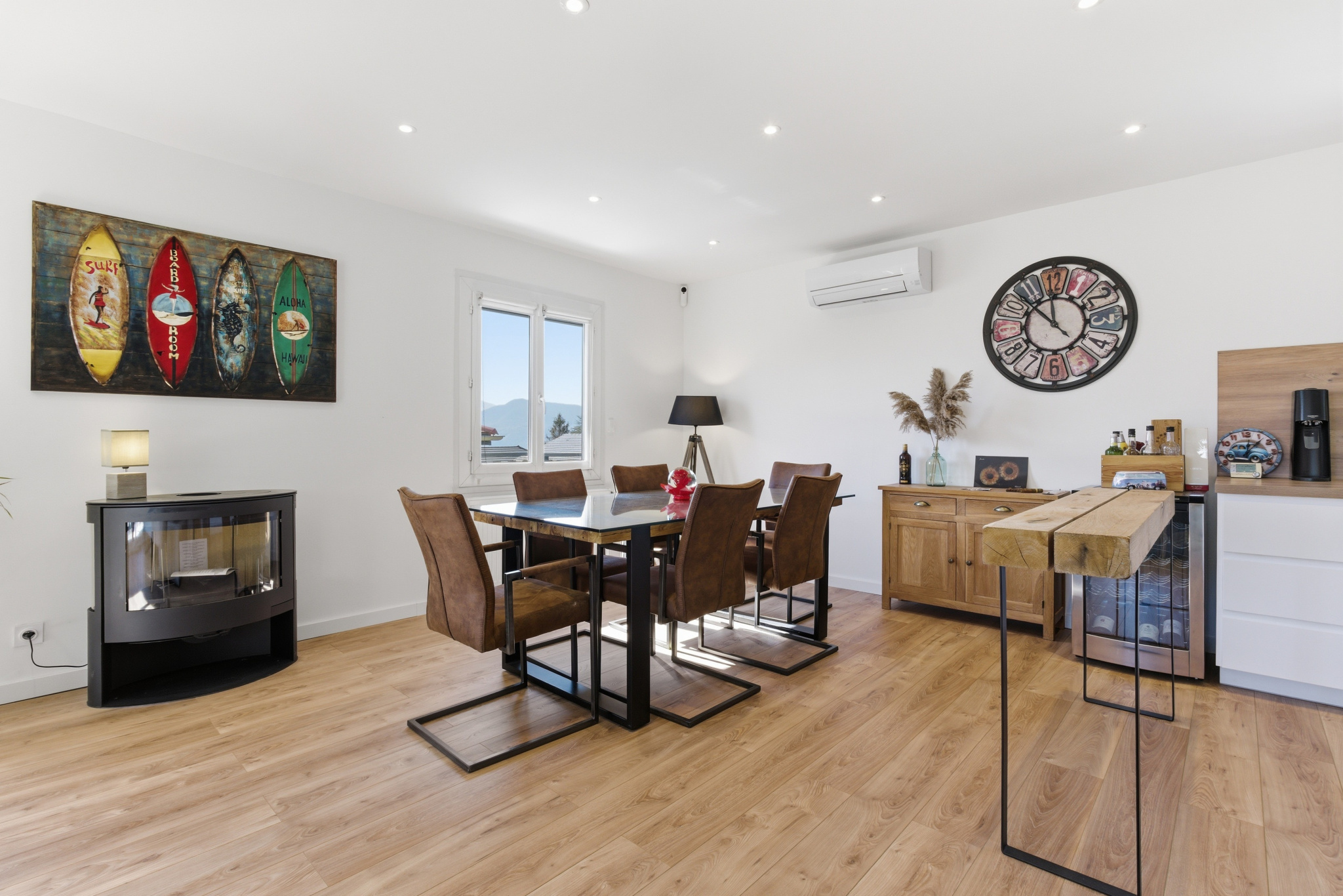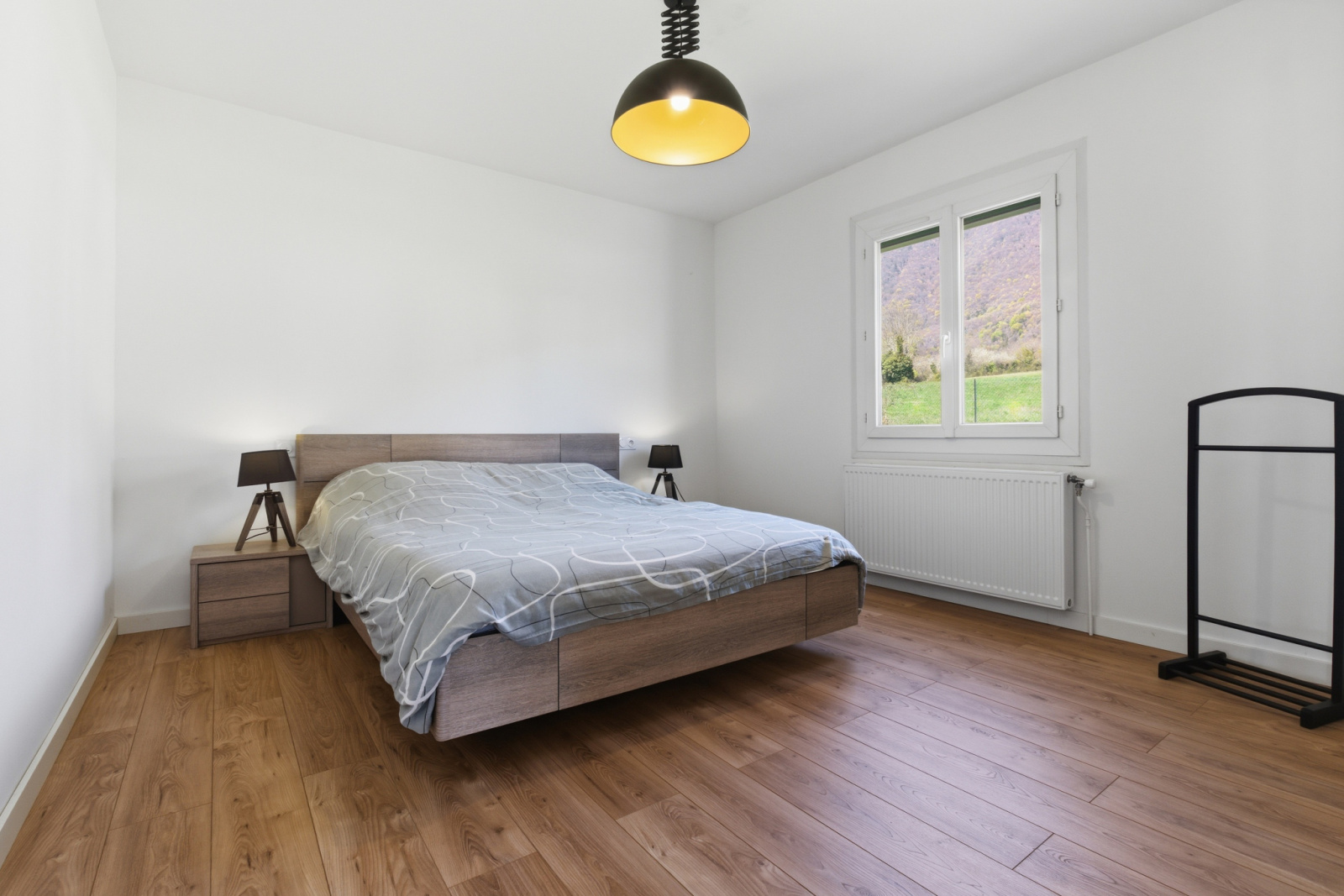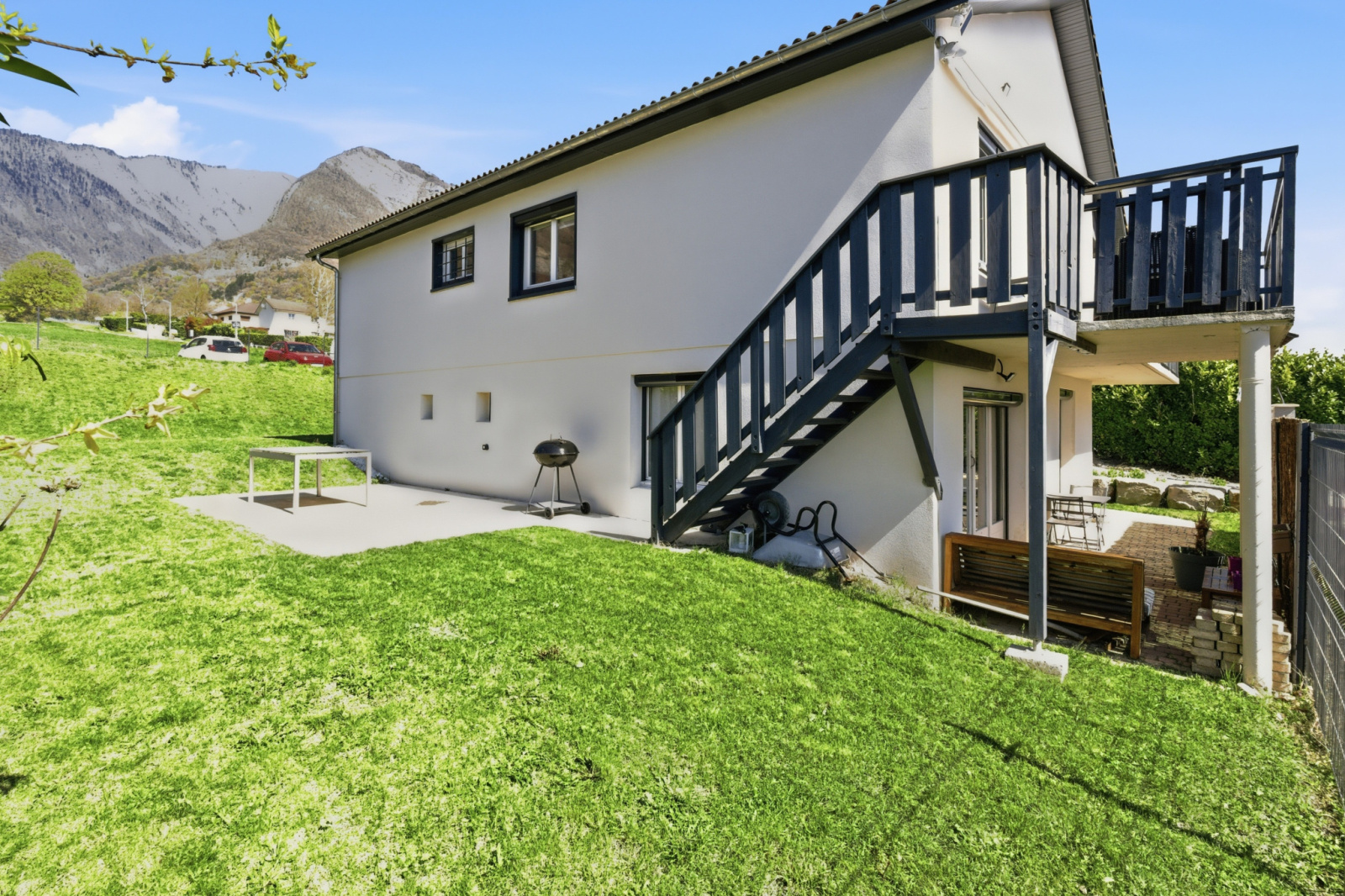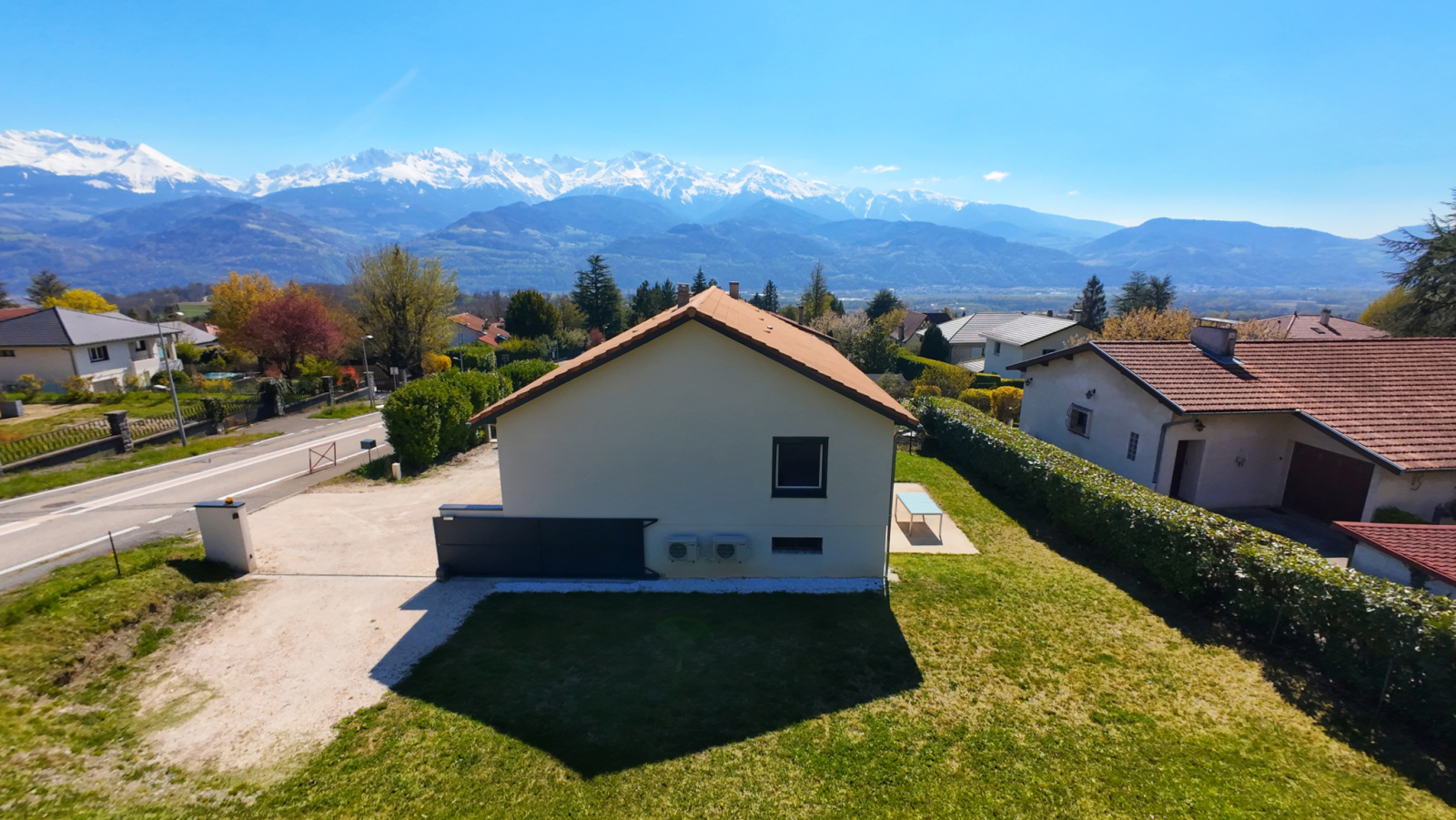 A l'étage une grande pièce de vie de 48m2 donnant sur les balcons vue Belledonne avec accès à la terrasse et au jardin.
