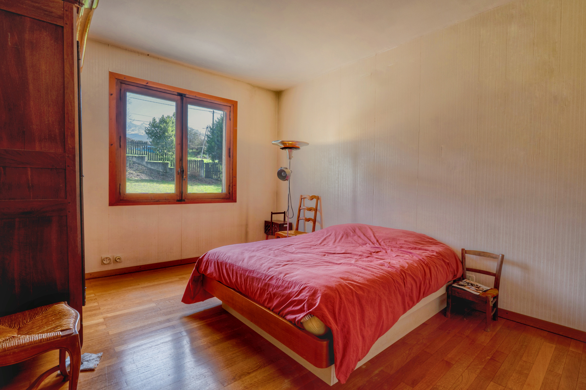 Le rez de Jardin comprant une grande pièce de vie, une cuisine séparée et 4 grandes chambres et salle de bains.. Il donne sur une terrasse avec vue sur le Vercors en face et la Chartreuse et Belledonne à droite.