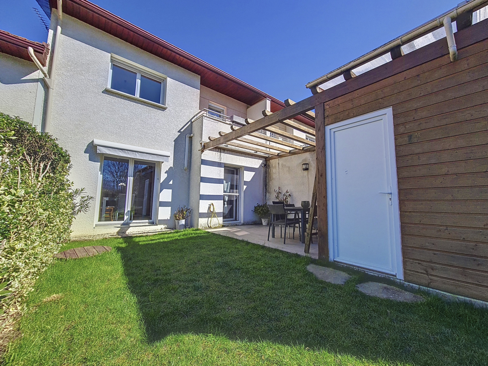 Lumineuse et fonctionnelle, elle se compose au RDC d'un hall d'entrée, d'une buanderie de 3m² avec rangements et lavabo, d'un wc séparé et d'une cuisine ouverte sur la salle à manger/séjour totalisant environ 30m² donnant sur le jardin qui comprend une terrasse de 12m² et un abri jardin.