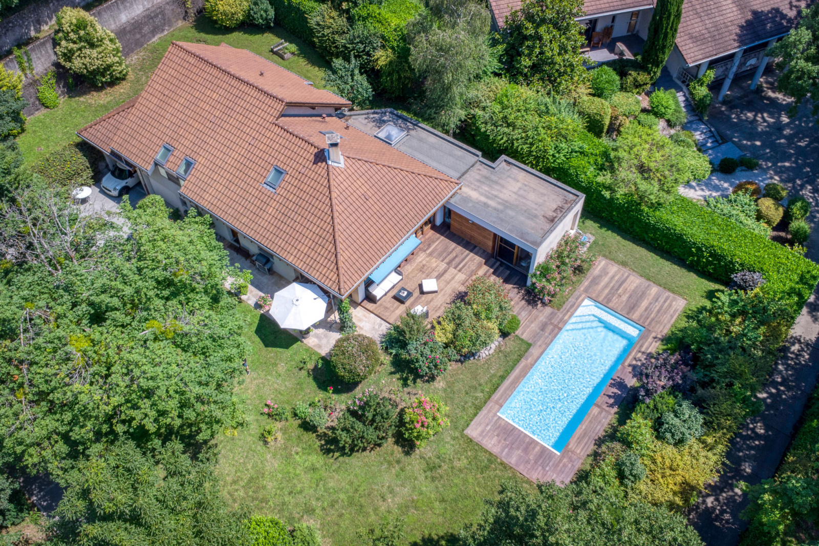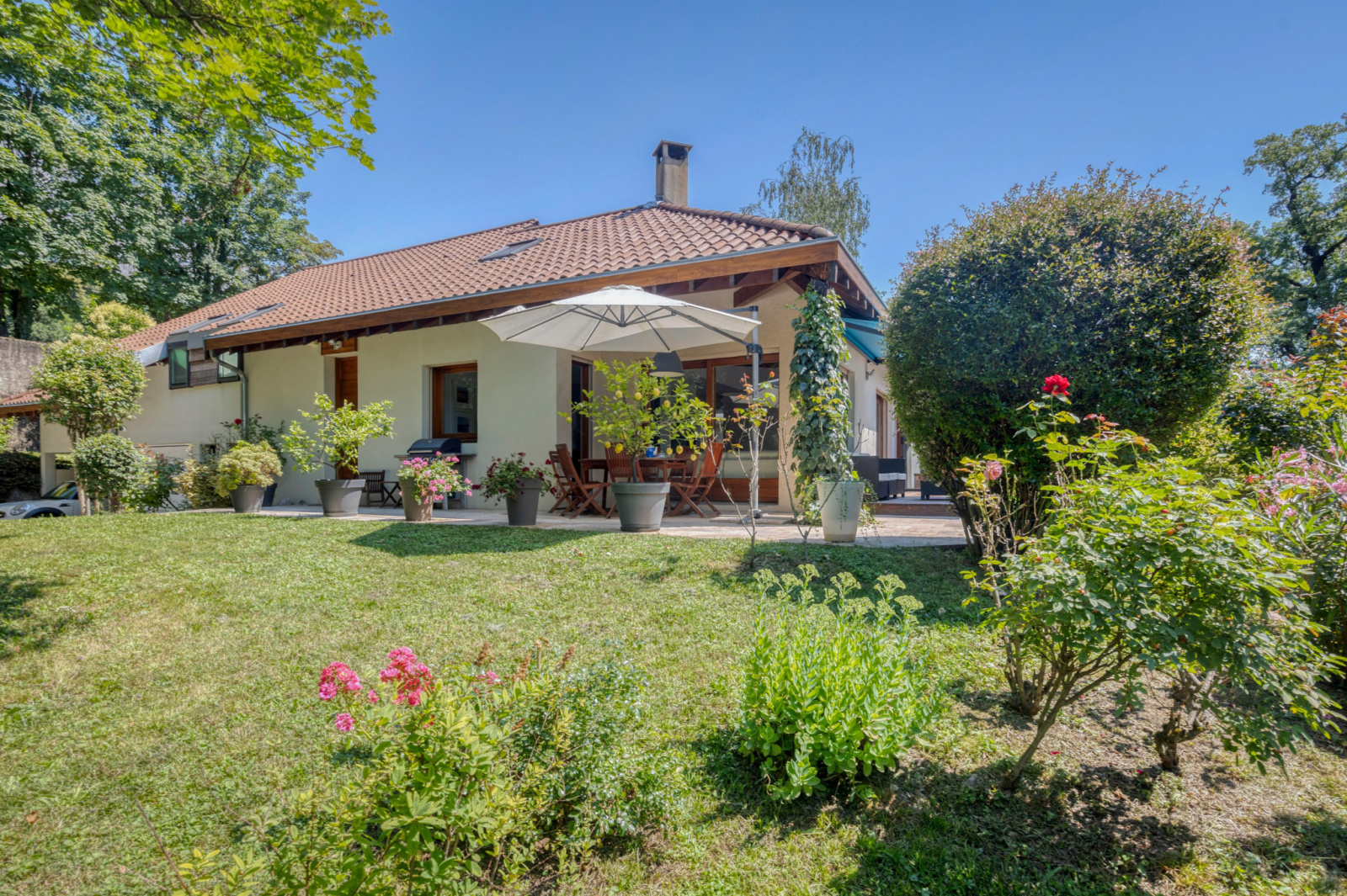 Superficie de 245m2 au sol sur un terrain de 1600m2 arborés au calme sans aucun vis à vis.