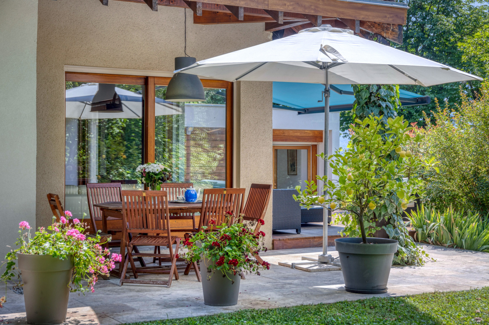 Trois Terrasses à l'Est, au Sud et à l'Ouest vous permettront de profiter de différents coins repas/petit dejeuner à toutes les heures de la journée.