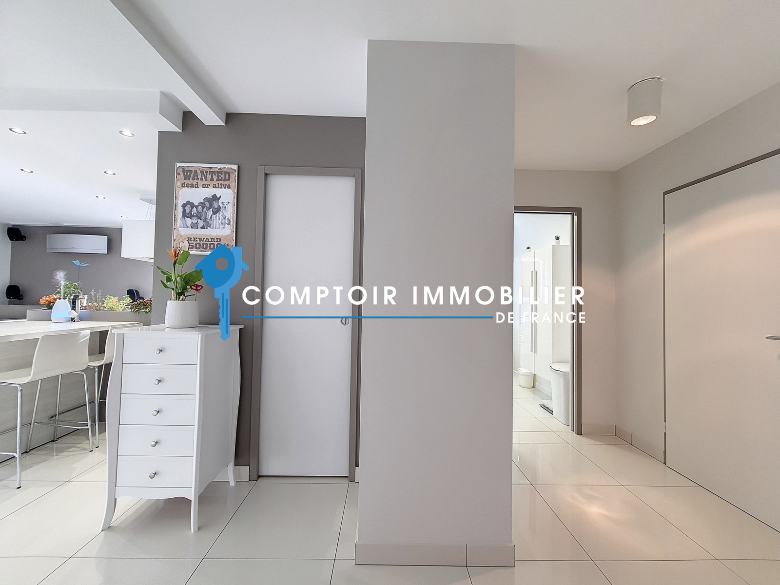 Il se compose d'une cuisine équipée Mobalpa ouverte sur un beau séjour totalisant environ 32m², d'un coin cellier, de trois chambres allant de 11 à 14m² toutes avec placard intégré, d'une salle de bain avec double vasque, d'un wc séparé et de nombreux rangements.