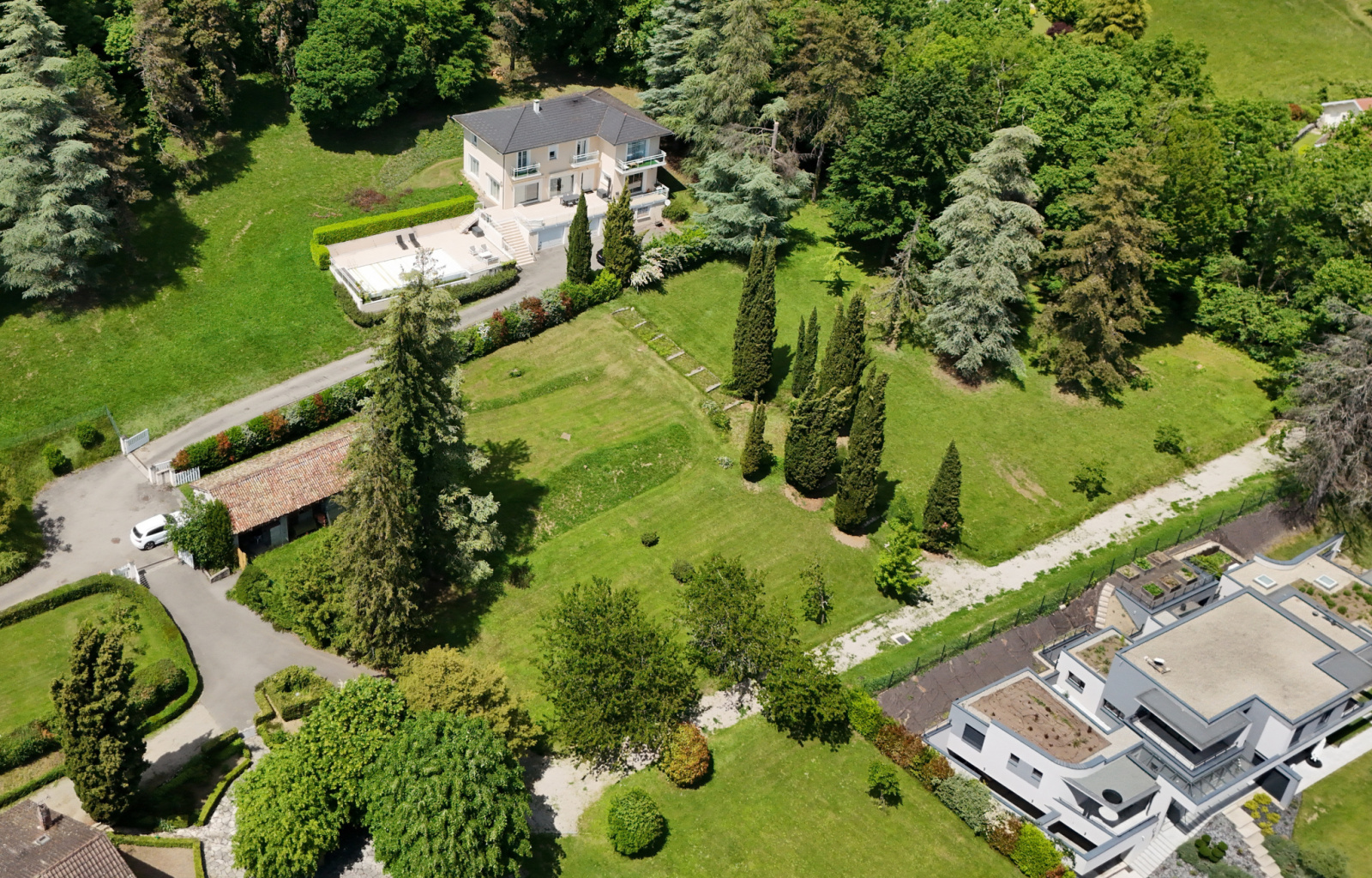 Vue Dégagée sur la chaine de Belledonne + Chartreuse. Cadre et environnement exceptionnel, au calme situé au fond d'une impase avec accès sécurisé et entièrement clos.