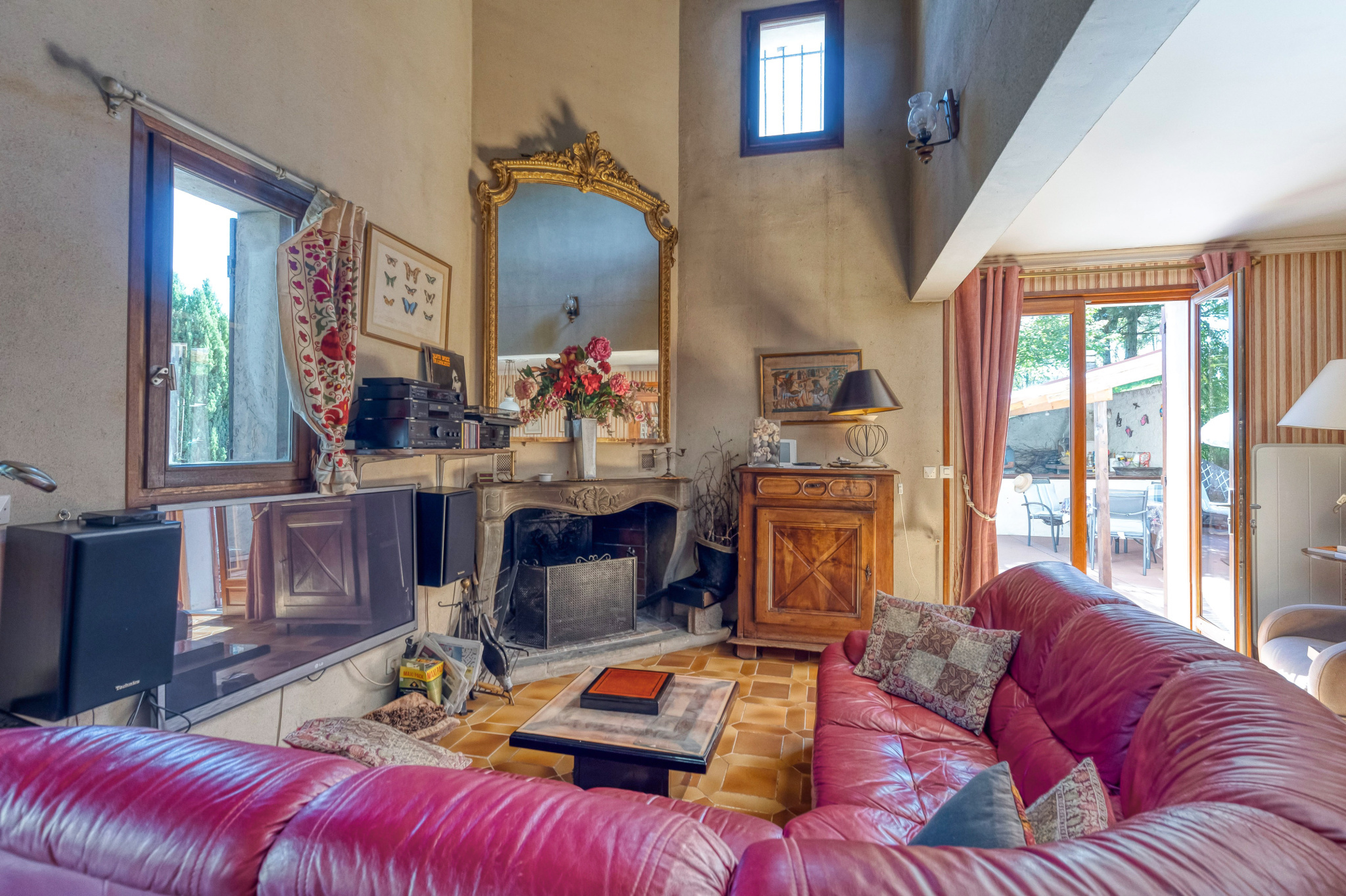 On accède au 1er étage pour découvrir un Salon -Salle à manger de 45 m2 avec cheminée, baigné de lumière grace a ses portes vitrées ouvrant sur une splendide terrasse de 60 m2 menant a une piscine ( 8 m x 4 m ) équipée d'un toit ouvrant électrique et d'un pool house idéale pour les journées estivales!