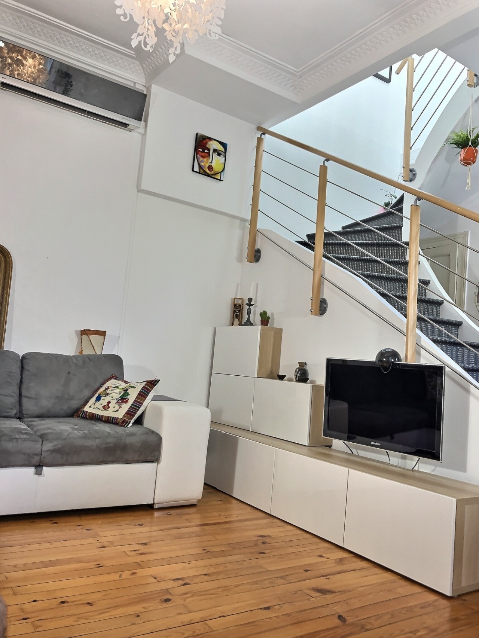 - Au RDC : Salon donnant sur terrasse de 18m2 , avec climatisation réversible, cuisine ouverte équipée et wc séparé.