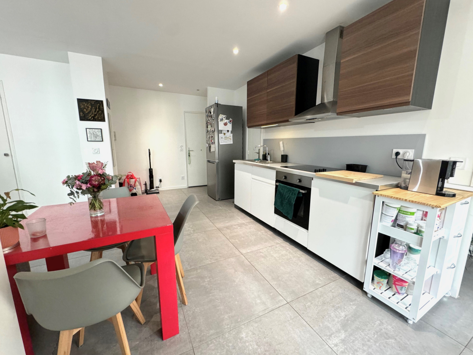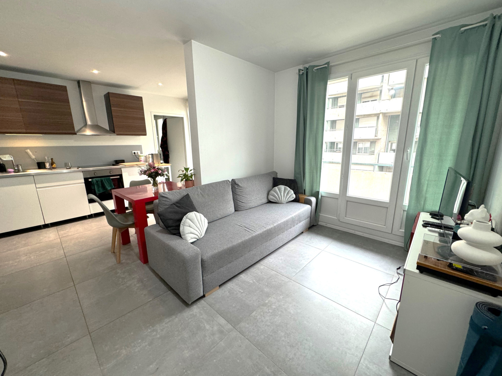 Il se compose d'une grande pièce à vivre lumineuse, d'une cuisine moderne équipée ouverte, d'une chambre spacieuse, d'une SDB élégante et WC séparé. Il bénéficie également d'un beau balcon filant permettant d'y aménager une petite table et chaise pour s'aéerer. Le tout a été rénové avec des matériaux de qualité, offrant un cadre de vie confortable et contemporain. Cet appartement bénéficie de belles prestations intérieures (menuiseries double vitrage PVC, carrelage 80x80, faux plafond avec spots..), aucun travaux n'est à prévoir !