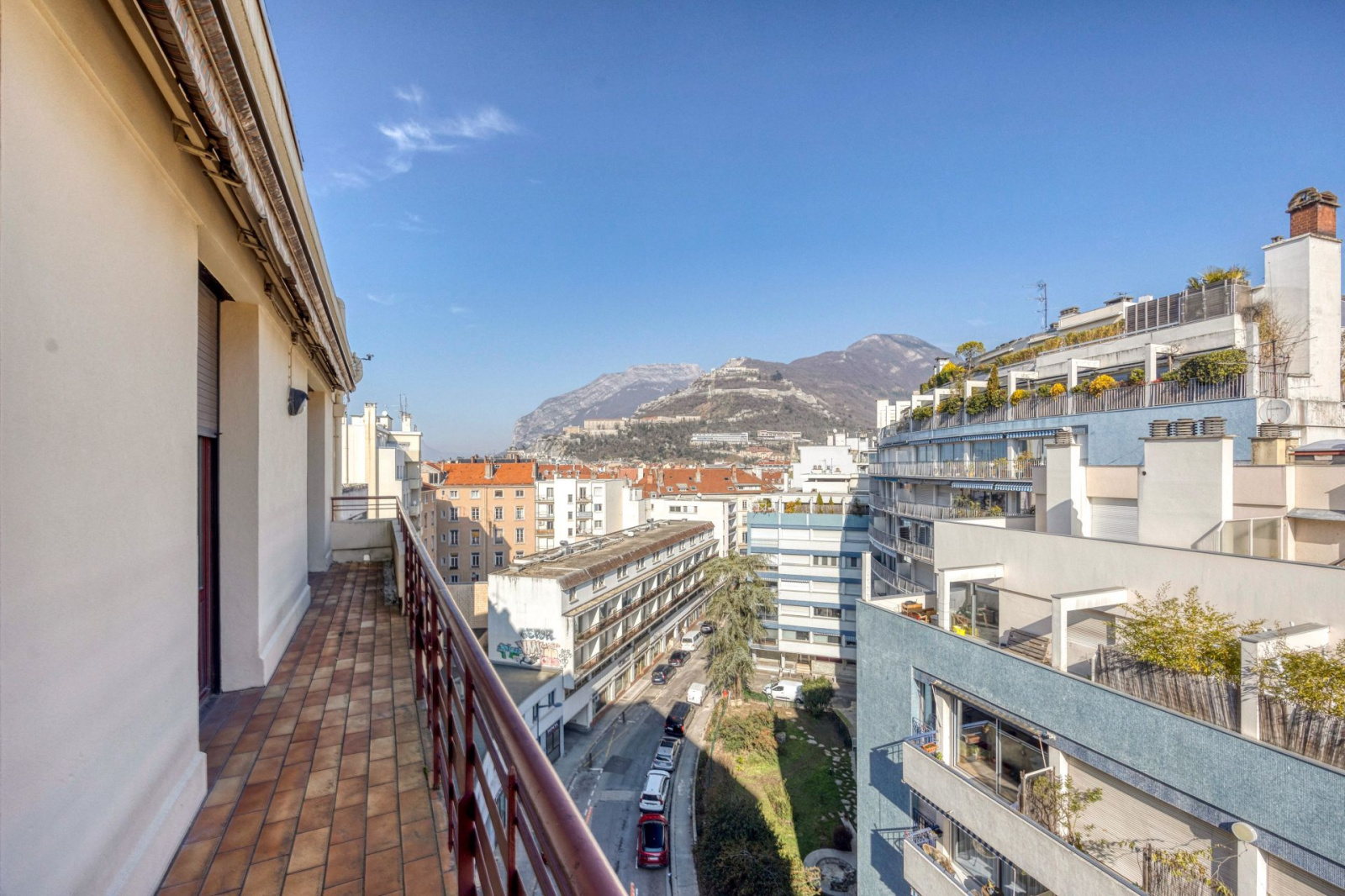 D'un salon et de 2 chambres avec accès sur un magnifique balcon traversant de 9m ( équipé de 3 stores ) avec vue plongeante sur la Bastille!