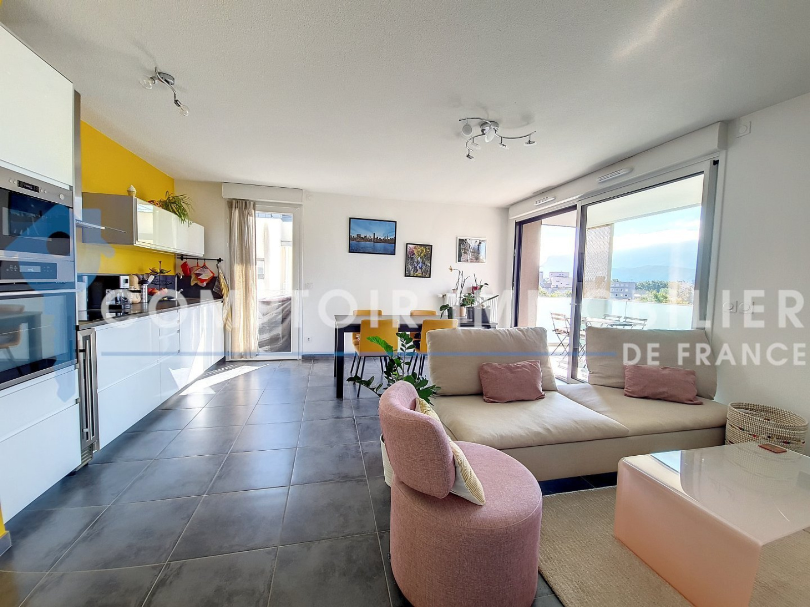Situé av Marcelin Berthelot secteur Mounier, proche de toutes les commodités (Tram A), à 5 min en vélo de la Caserne de Bonne et 20 min de l'Université. Dans une résidence de 2018 aux normes PMR et RT2012 au 5ème étage /6 avec ascenseur, accès sécurisé et comprenant un garage à vélo collectif ainsi que la possibilité d'acquérir un garage pour 15000€. Venez découvrir ce lumineux appartement T3 exposé Sud/Ouest d'environ 60m² où vous aurez juste à poser vos valises! Il se compose d'une cuisine équipée ouverte sur un vaste séjour d'environ 27m², de 2 chambres de 10 et 11m², d'une salle de douche et un wc séparé ainsi que de nombreux rangements. Sa terrasse d'environ 12m² offrant une vue panoramique et imprenable sur les massifs sans vis à vis finira de vous charmer ! Chauffage collectif / porte blindée / volets électriques => visite virtuelle disponible. CIF GRESIVAUDAN - Titouan NICOLAS - 06 67 58 83 30 - Plus d'informations sur cif-immo.com (réf. 13932) Bien soumis au statut juridique de la Copropriété. Nb de lots : 100. Charges annuelles de copropriété (Montant moyen annuel quote-part du budget prévisionnel vendeur) : 700 €. Honoraires charge vendeur