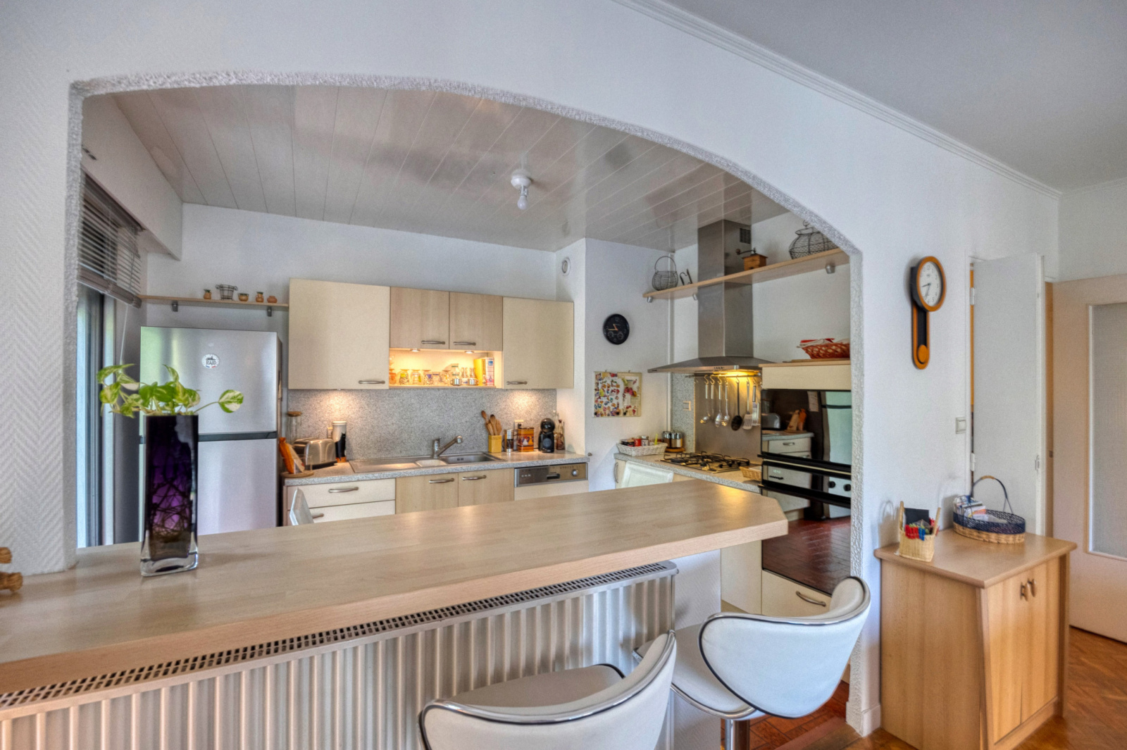 L'appartement se distingue par une cuisine fonctionnelle et de qualité ouverte sur un séjour lumineux, bénéficiant d'une exposition Sud-Ouest, et de l'accès à deux balcons ensoleillés.