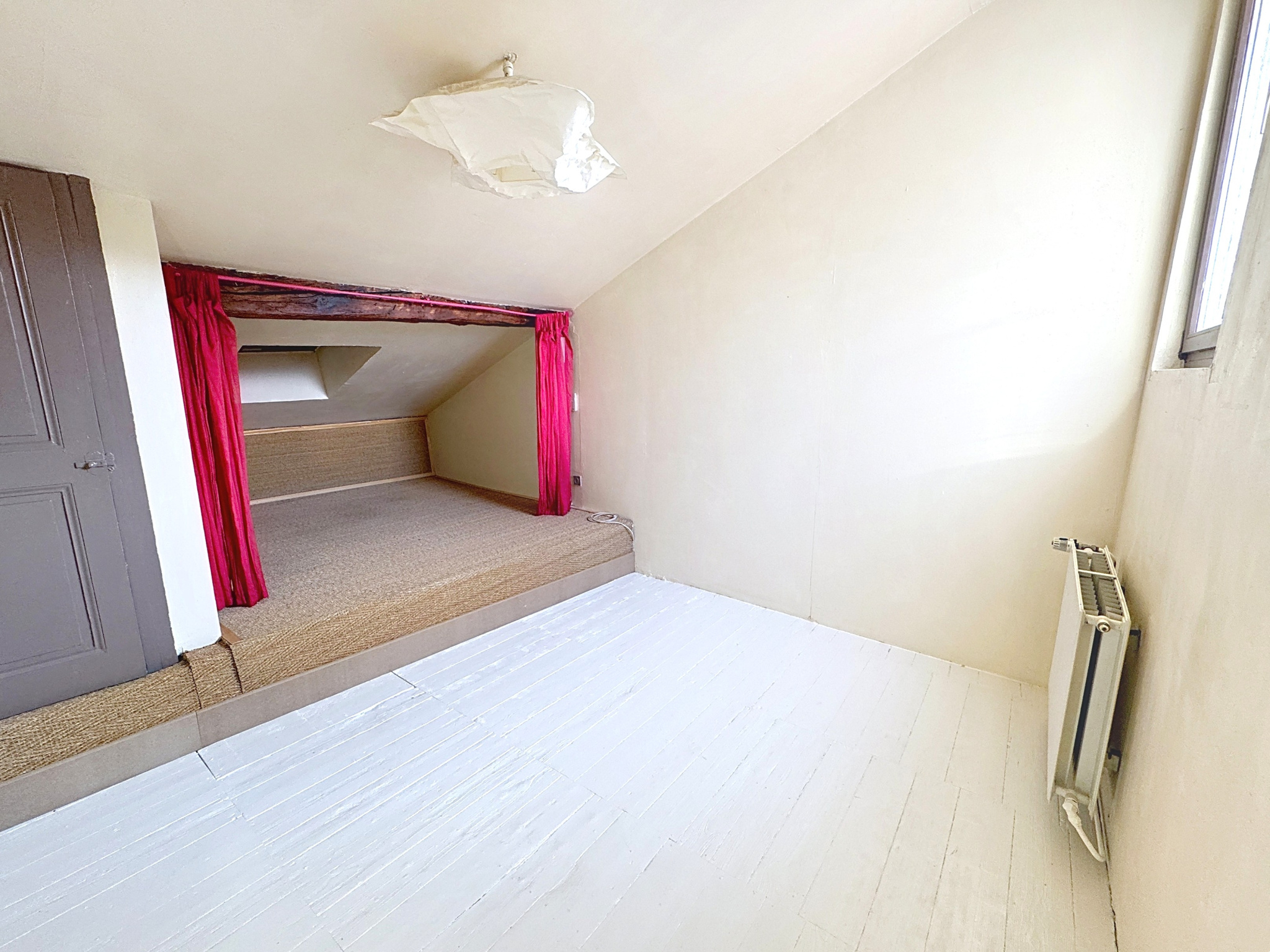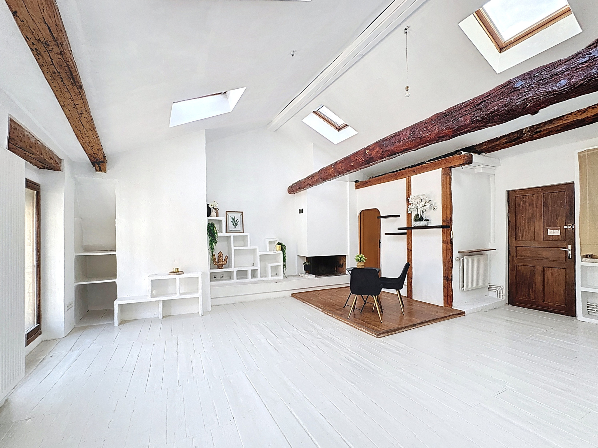 Au 4eme et dernier étage, ce bel appartement de type T5 développe 120 m² habitables et séduit dès l’entrée par sa belle hauteur sous plafond et son cachet authentique : poutres apparentes, cheminée et charme de l'ancien confèrent une atmosphère chaleureuse et unique.