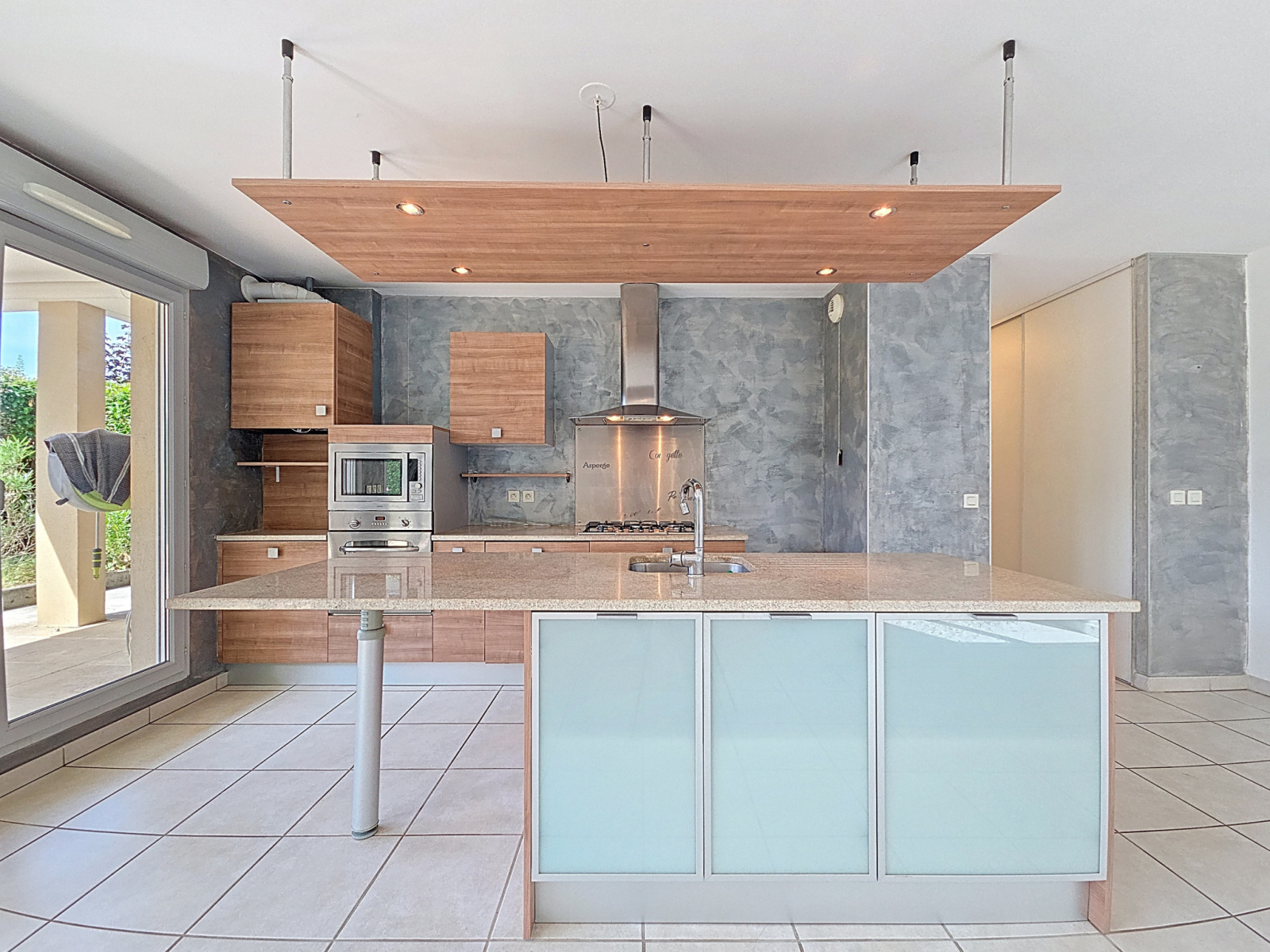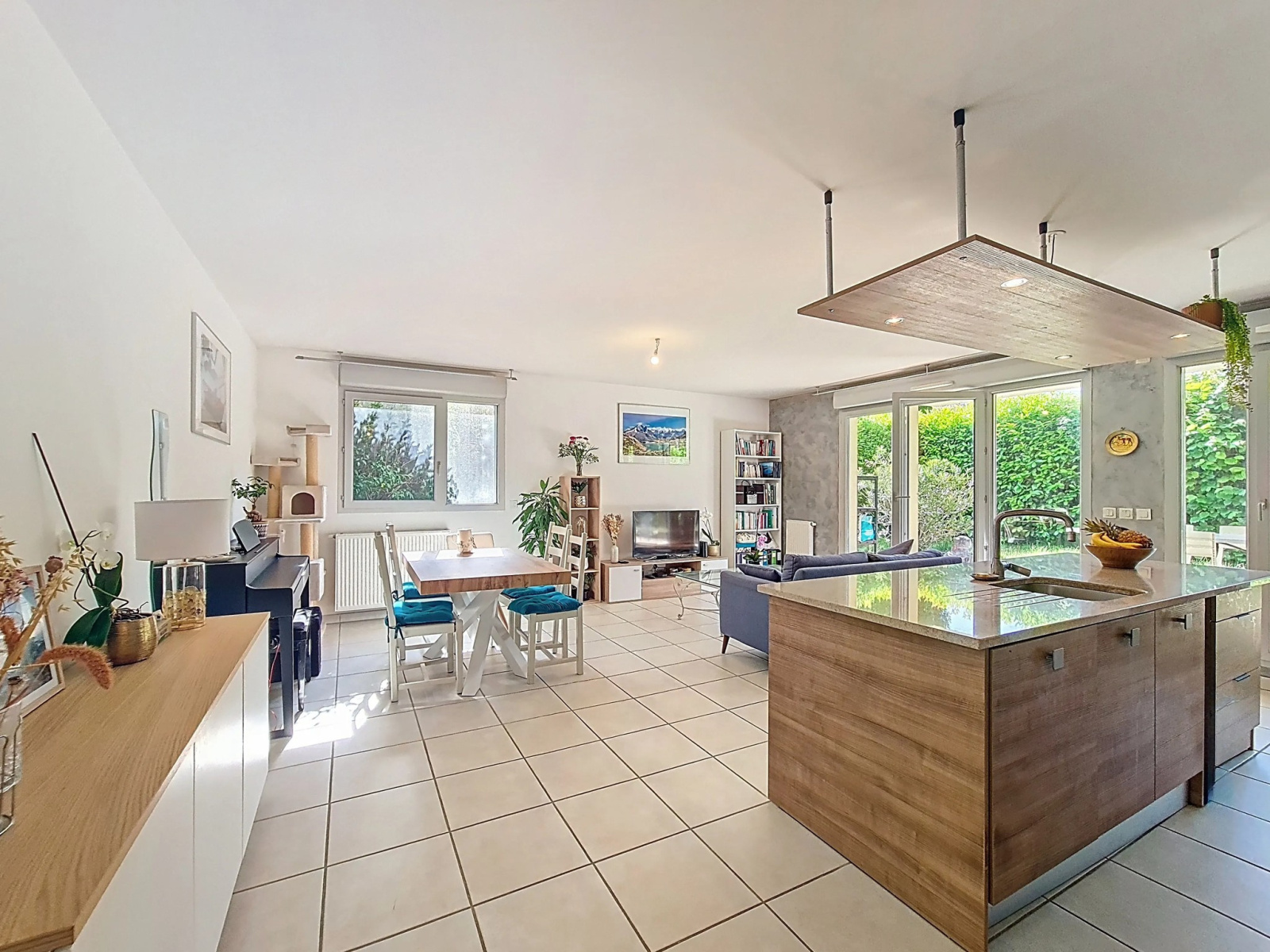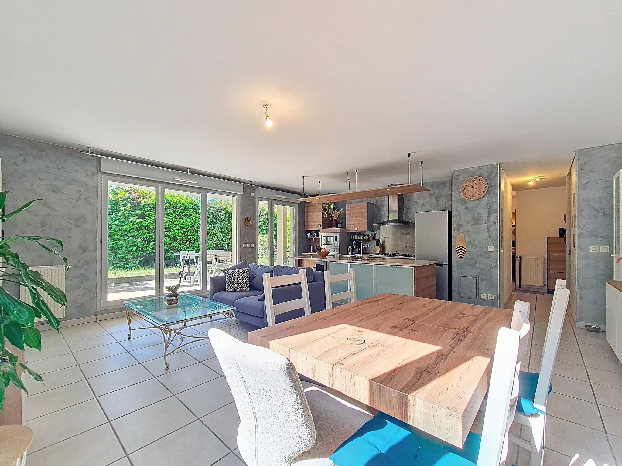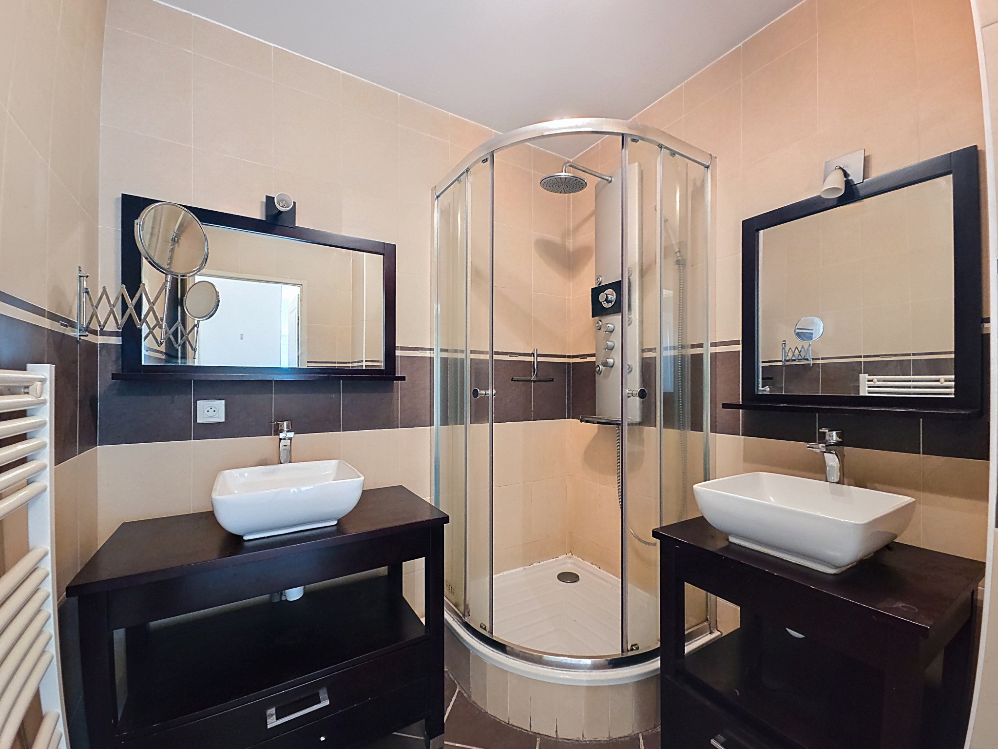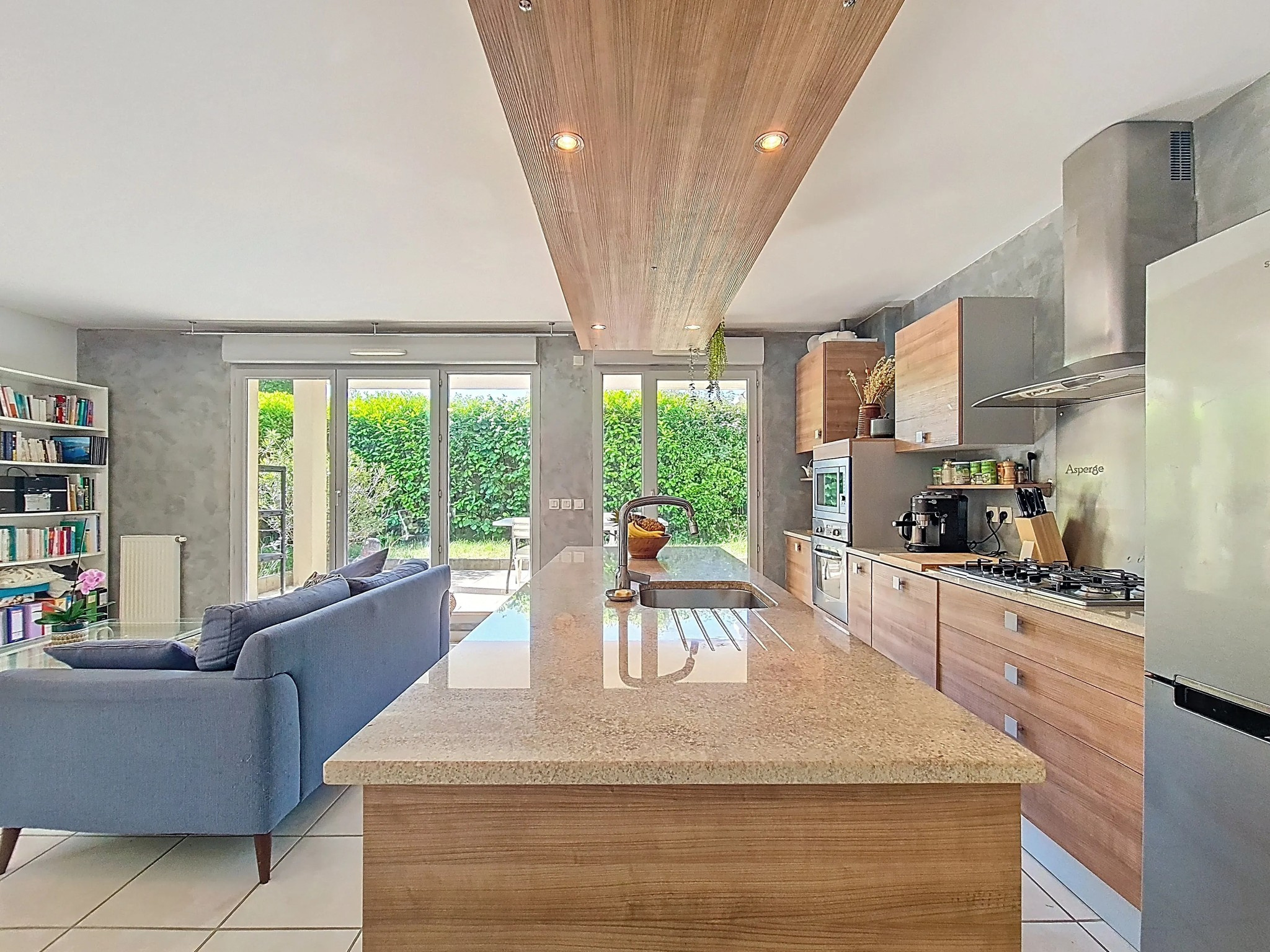 Il se compose d'un hall d'entrée avec placards, d'une belle pièce de vie composée d'une cuisine équipée ouverte sur le séjour + salle à manger totalisant 36m² et donnant sur le jardin, le coin nuit séparé ce compose de deux chambres de 11m² avec placards intégrés, d'une salle d'eau de 4m² avec deux vasques et d'un wc séparé avec point d'eau.