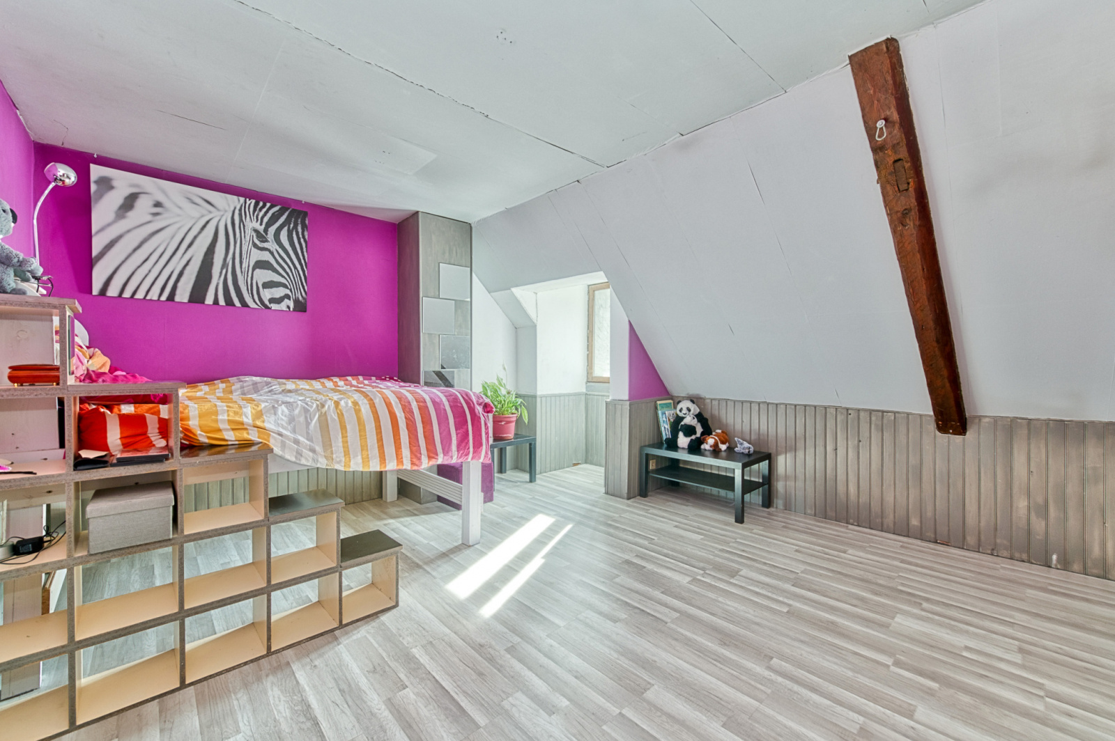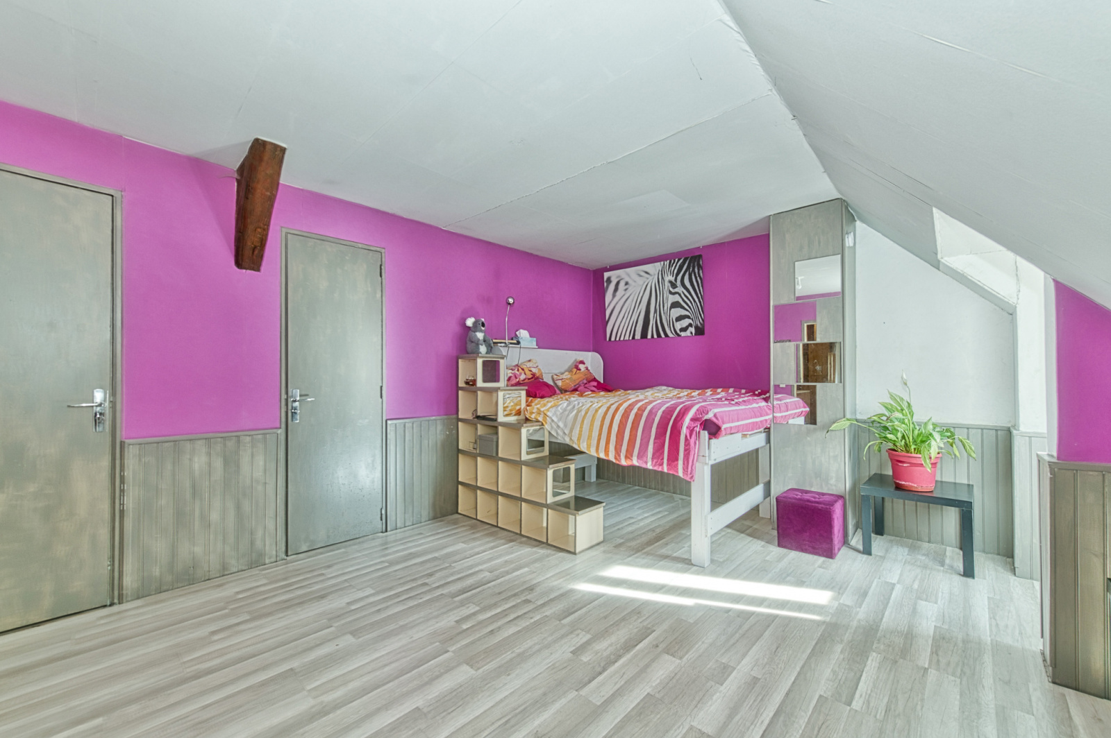 À l'étage, deux chambres spacieuses de plus de 15m² chacune, une salle de bains avec douche et baignoire, un bureau de 12m² et un dressing offrent un espace de rangement supplémentaire.