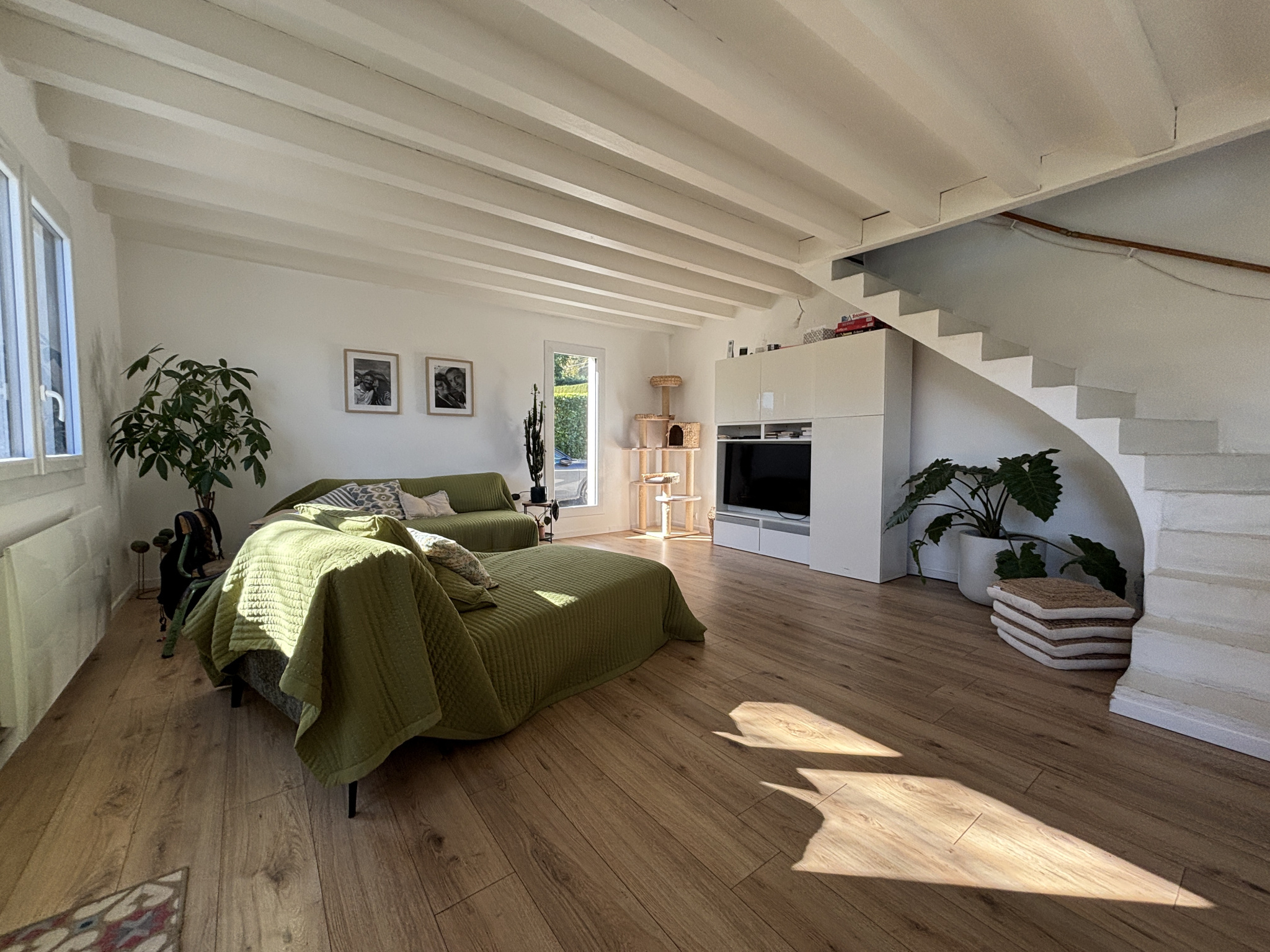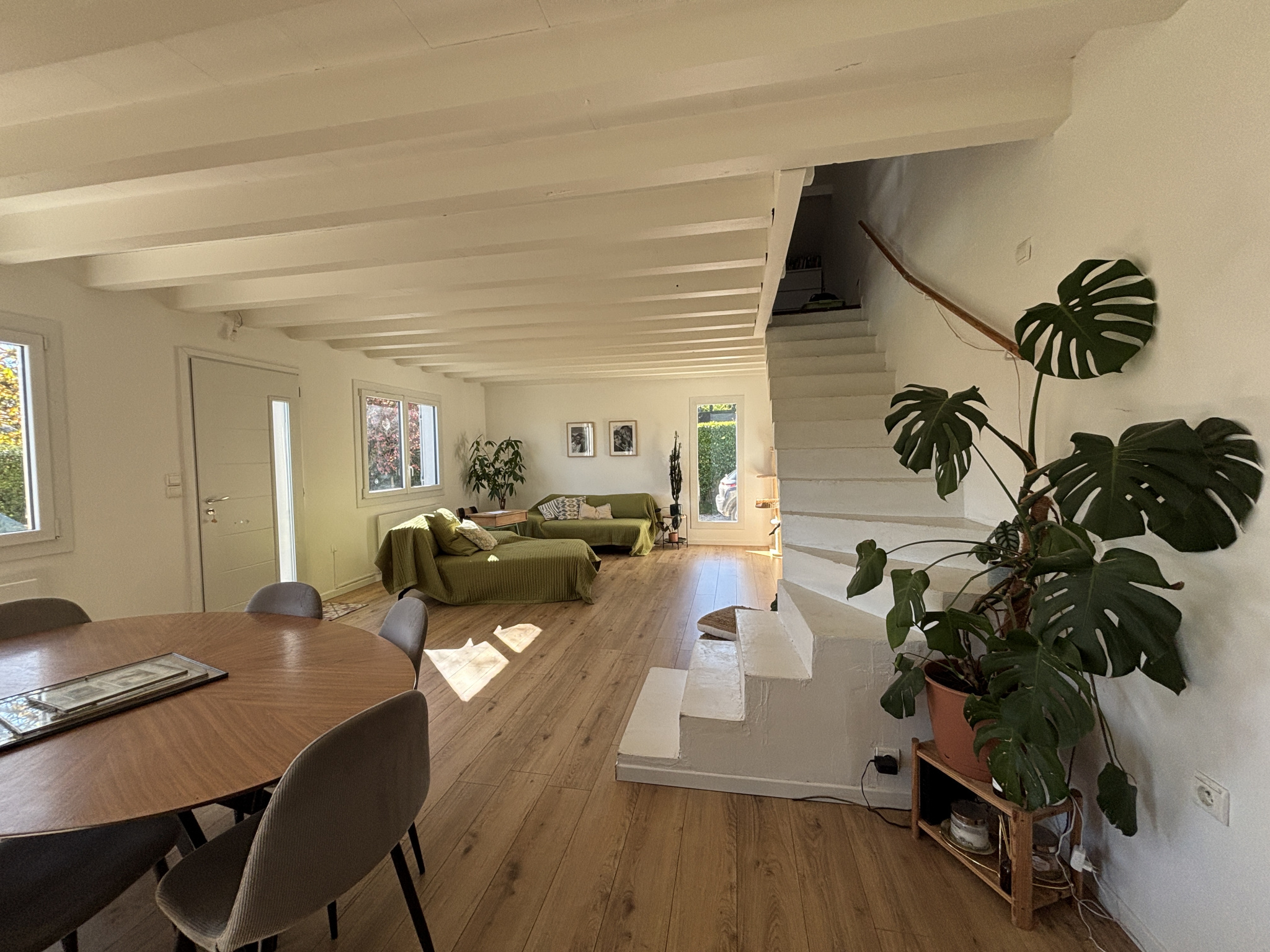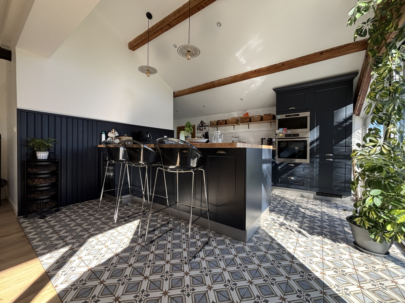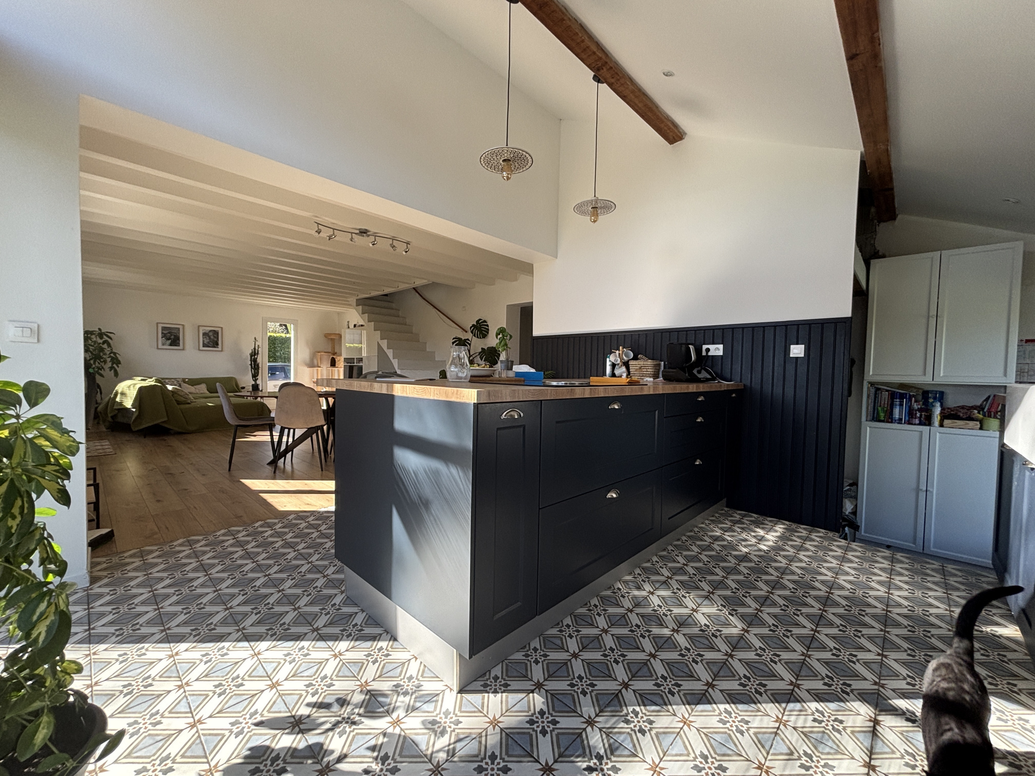 Au rez-de-chaussée, vous profiterez d’une grande pièce de vie spacieuse et conviviale, baignée de lumière naturelle, avec une cuisine ouverte, moderne, entièrement équipée et aménagée.