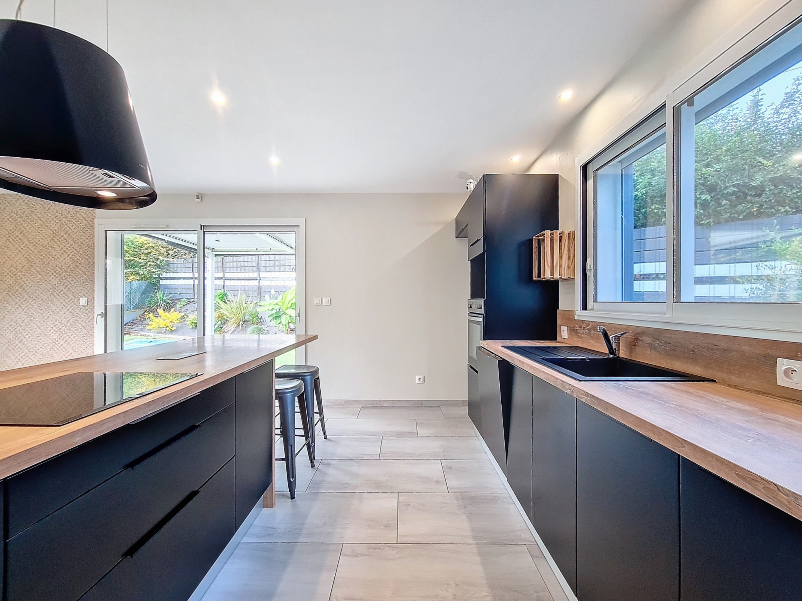 Une piscine enterrée de 10m3, un garage à vélos/motos de 6m² et 3 places de stationnement extérieur complètent ce bien.