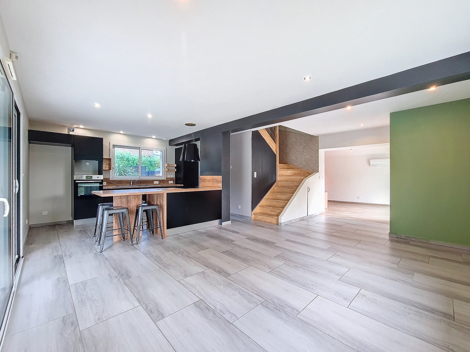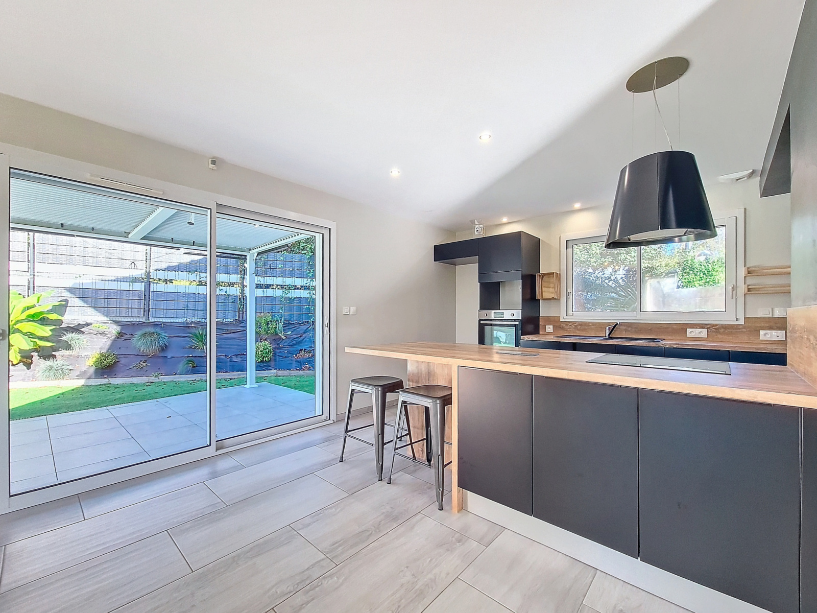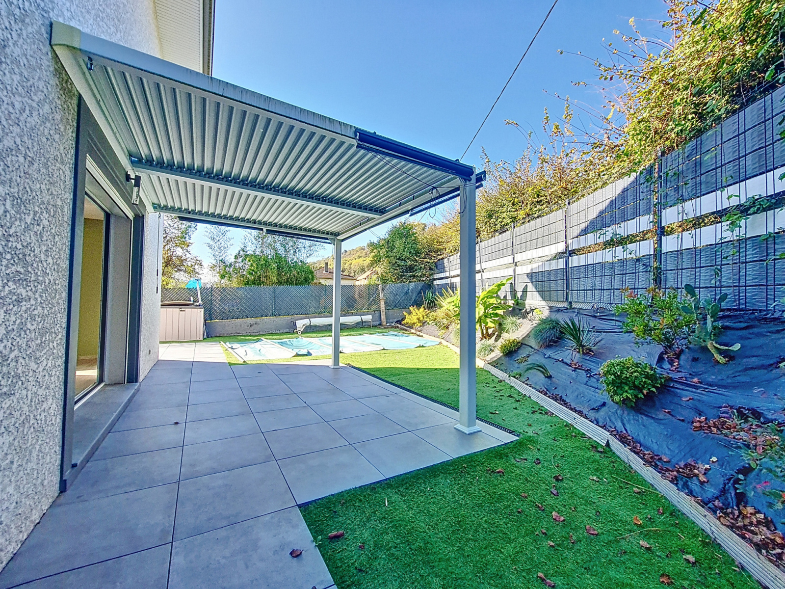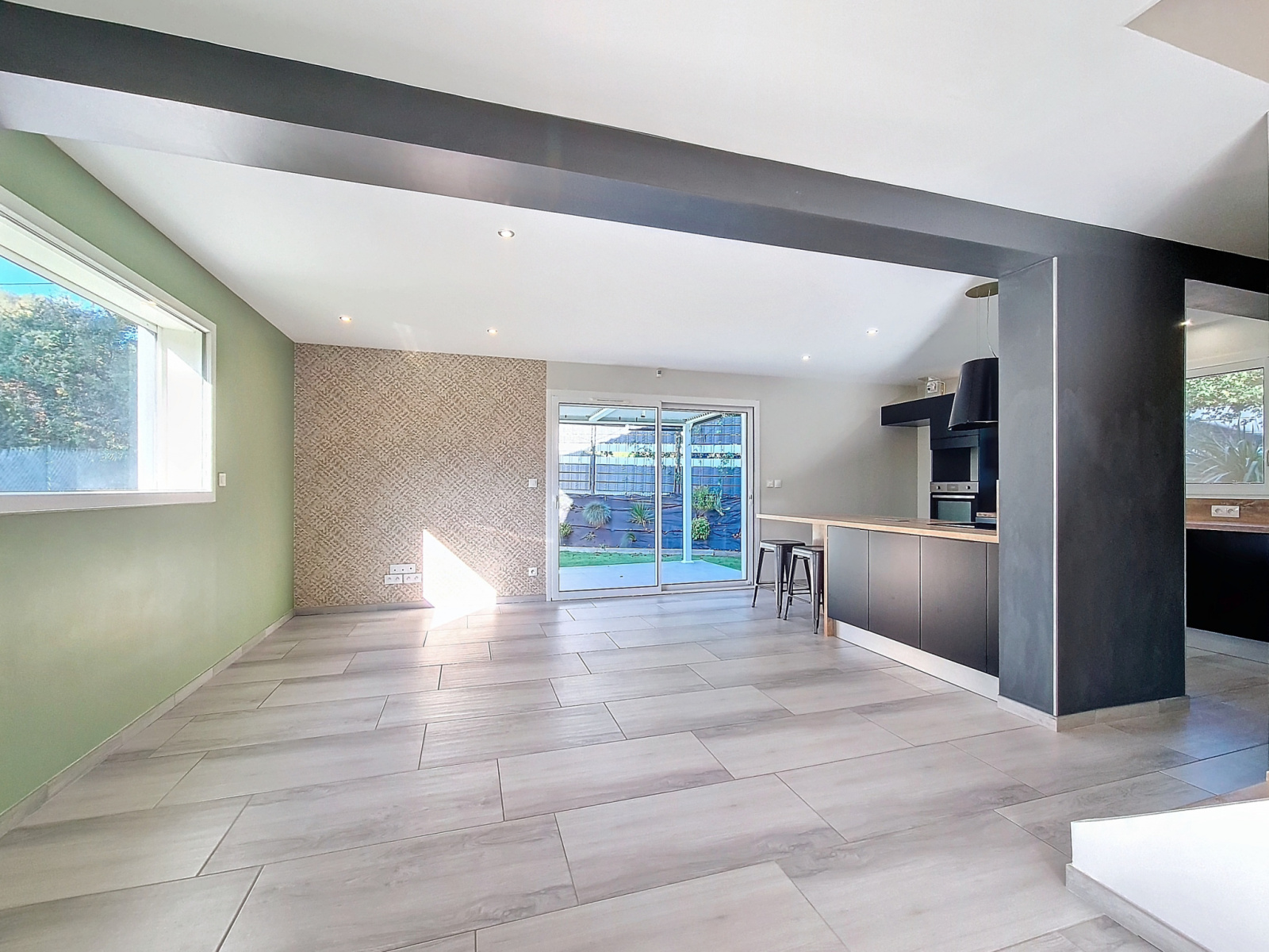 Lumineuse car exposée Sud, elle se compose au RDC d'un hall d'entrée avec placards, d'une cuisine Armony équipée ouverte sur le séjour / salle à manger totalisant 42m² et donnant sur la terrasse carrelée coté Ouest qui comprend une pergola, d'une pièce de 12m² et d'un wc séparé.