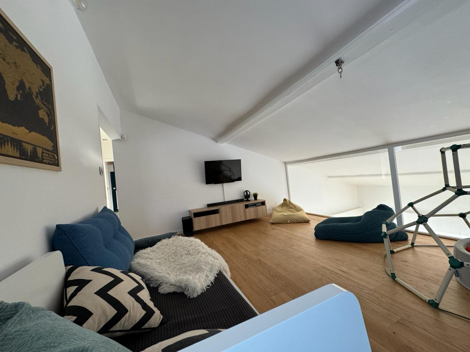 A l'étage, une grande salle de jeux ouverte sur le séjour de 20m2 (pouvant être fermée en chambre ou bureau), 2 chambres de 11m2 et 12m2 avec une grande salle de bains et pour finir et une grande suite parentale de 20m2 avec dressing, salle d'eau et coin bureau.