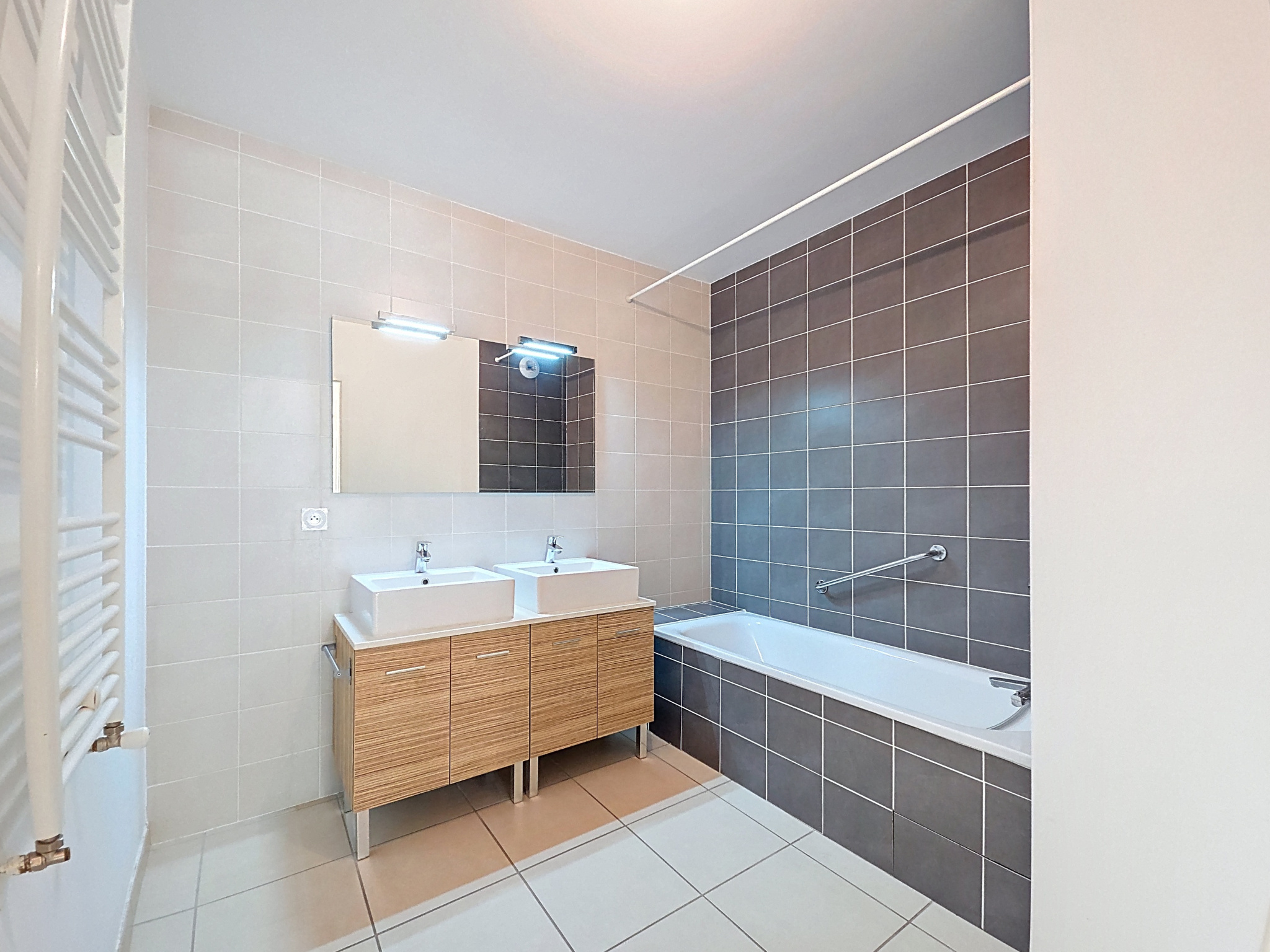 Il se compose d'un hall d'entrée avec placards, d'une pièce de vie composée d'une cuisine semi-équipée ouverte sur le séjour totalisant 26m² et donnant sur le jardin, le coin nuit ce compose de deux chambres de 10 et 11m² avec placards intégrés, d'une spacieuse salle de bain de 6m² avec meuble double vasques et d'un wc séparé