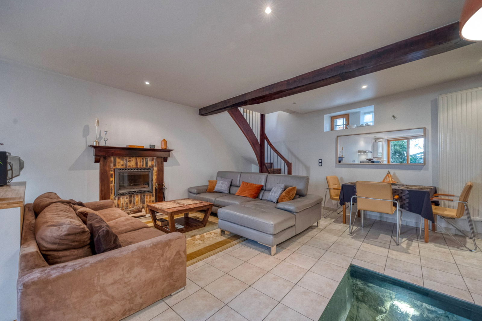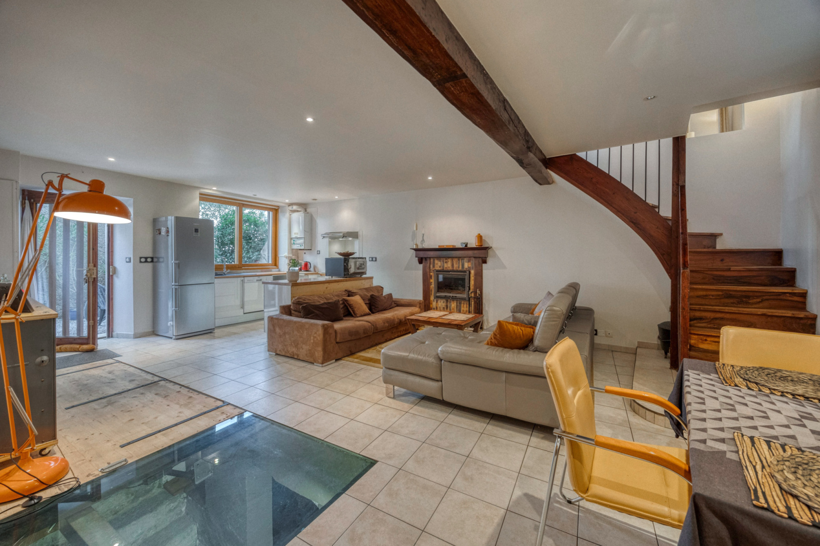 Au niveau principal vous trouverez un salon/cuisine de 36m2 avec wc séparé.