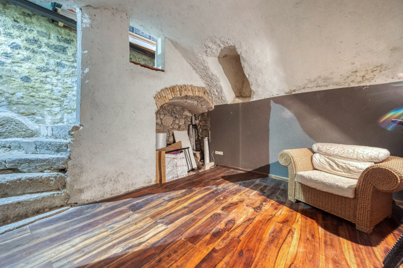 Depuis la pièce principale, vous pourrez accéder par un escalier avec ouverture automatique à une belle cave voutée de 17m2 chauffée pouvant dont être utilisé en pièce annexe.