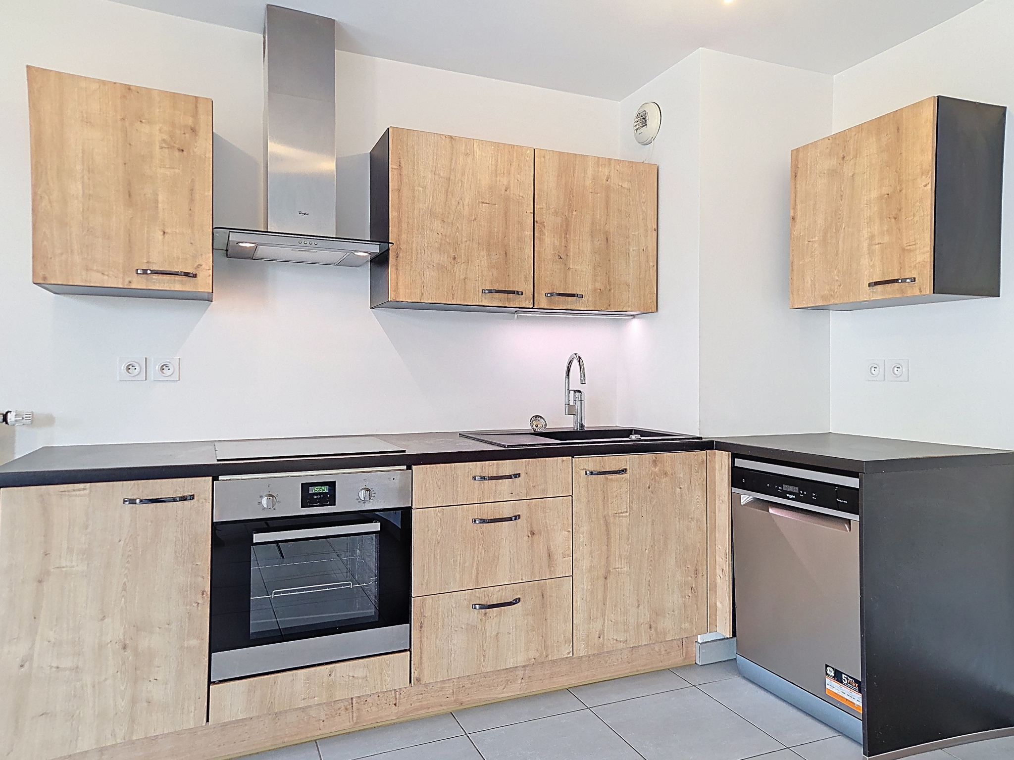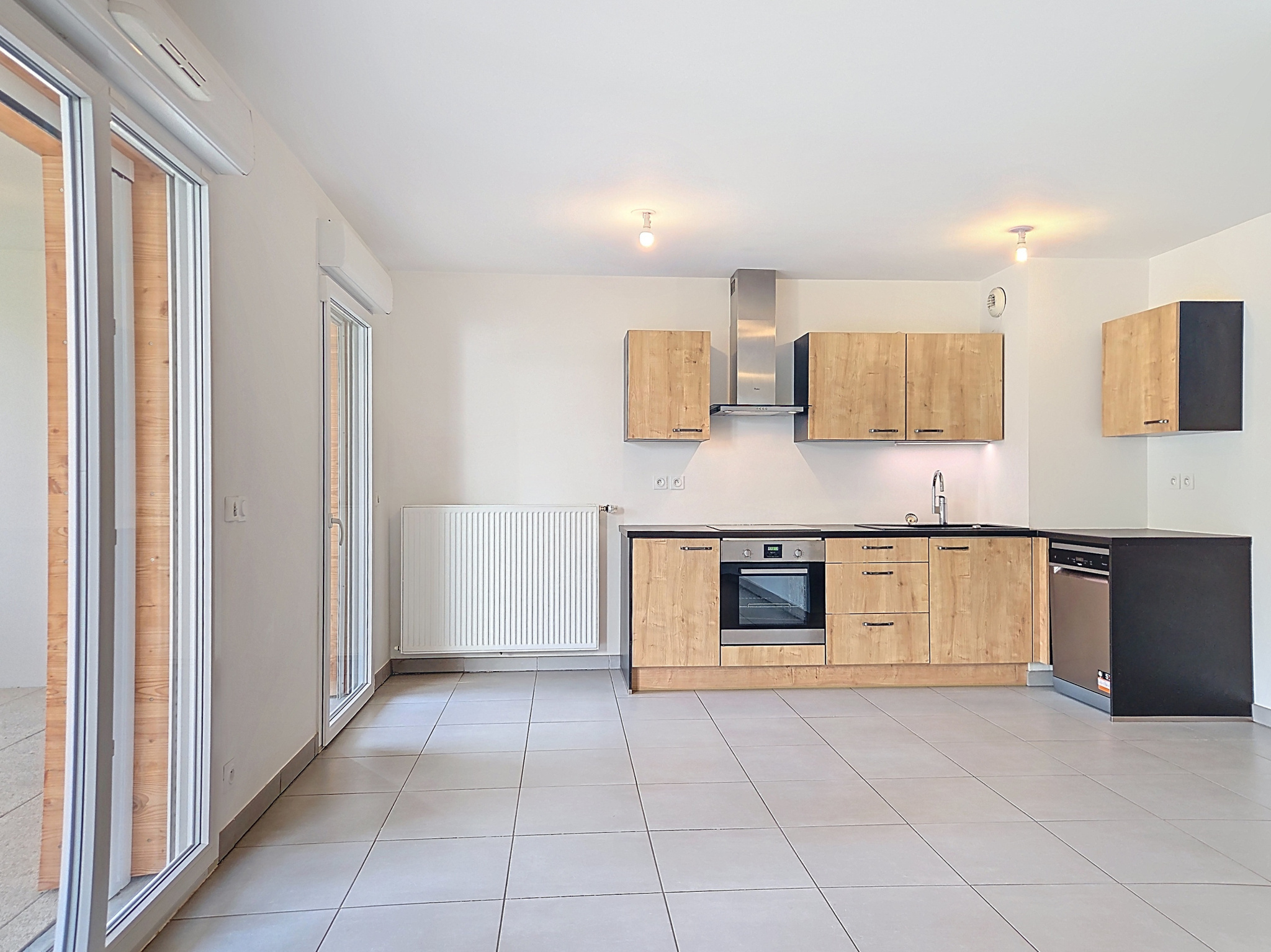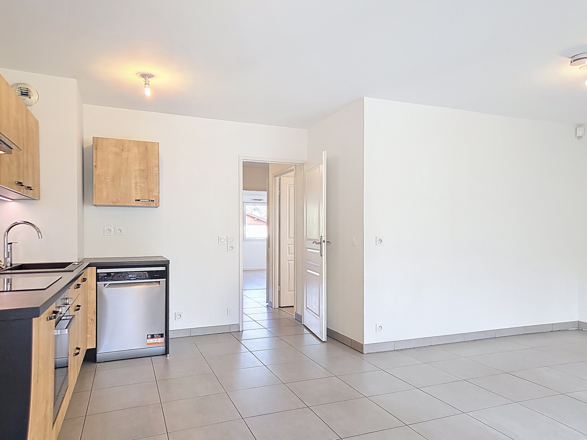 Il se compose d’une entrée avec placards, d’une cuisine équipée ouverte sur le séjour totalisant environ 24 m².