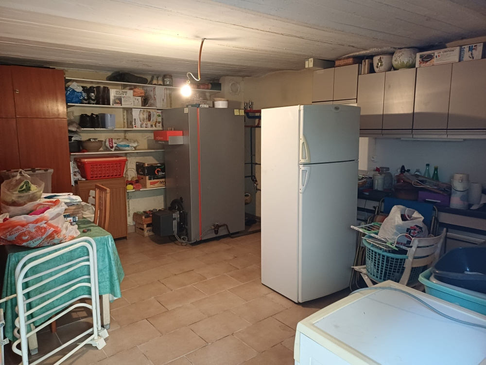 Rez de chaussée : Chaufferie de 22 m2 avec la chaudière au fuel et coin cuisine d'été, buanderie et le garage de 28 m2 - Hauteur sous Plafond 2,20