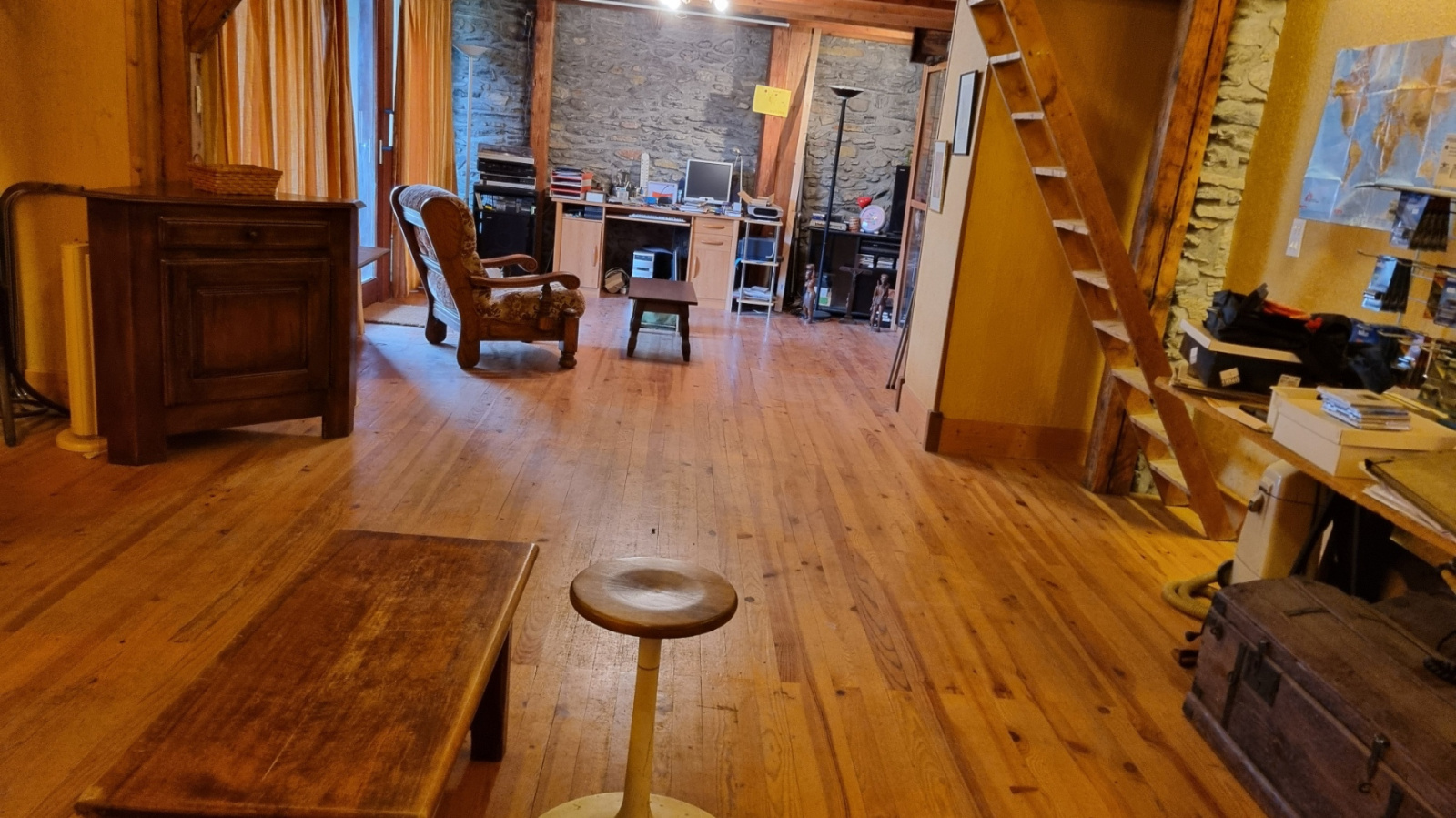 Au 1er étage : 1 espace de 52m2 + une mezzanine de 25m2 propice à un futur aménagement pour un aibnb !