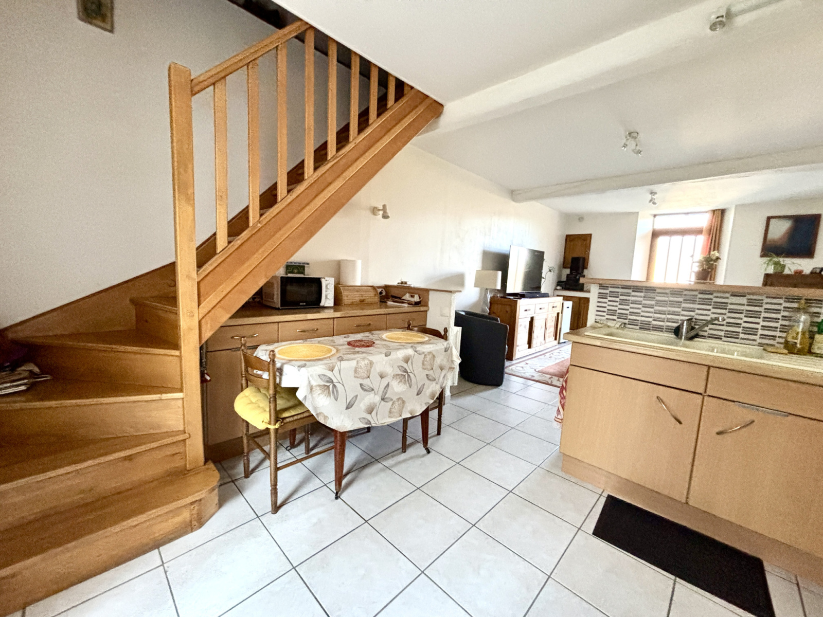 La maison s'accompagne d'un petit extérieur, dotée d'une terrasse avec de nombreux rangements.