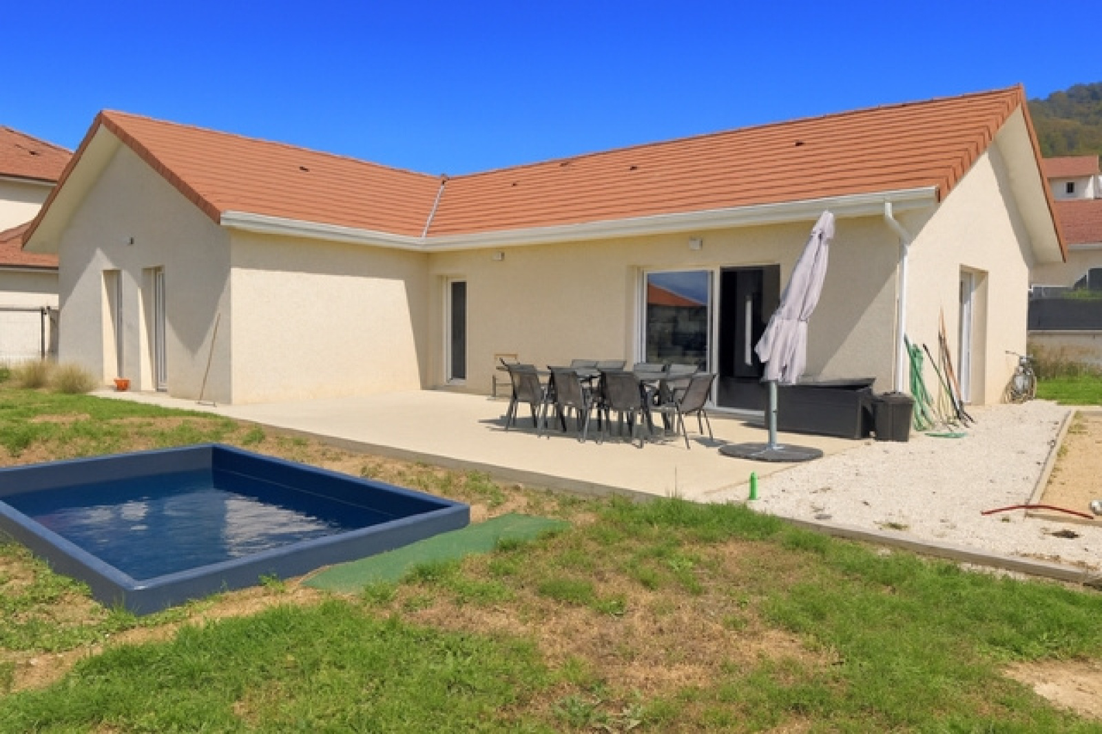 Son terrain de 500m², vous proposera une terrasse de 50m², une piscine et un terrain de pétanque.