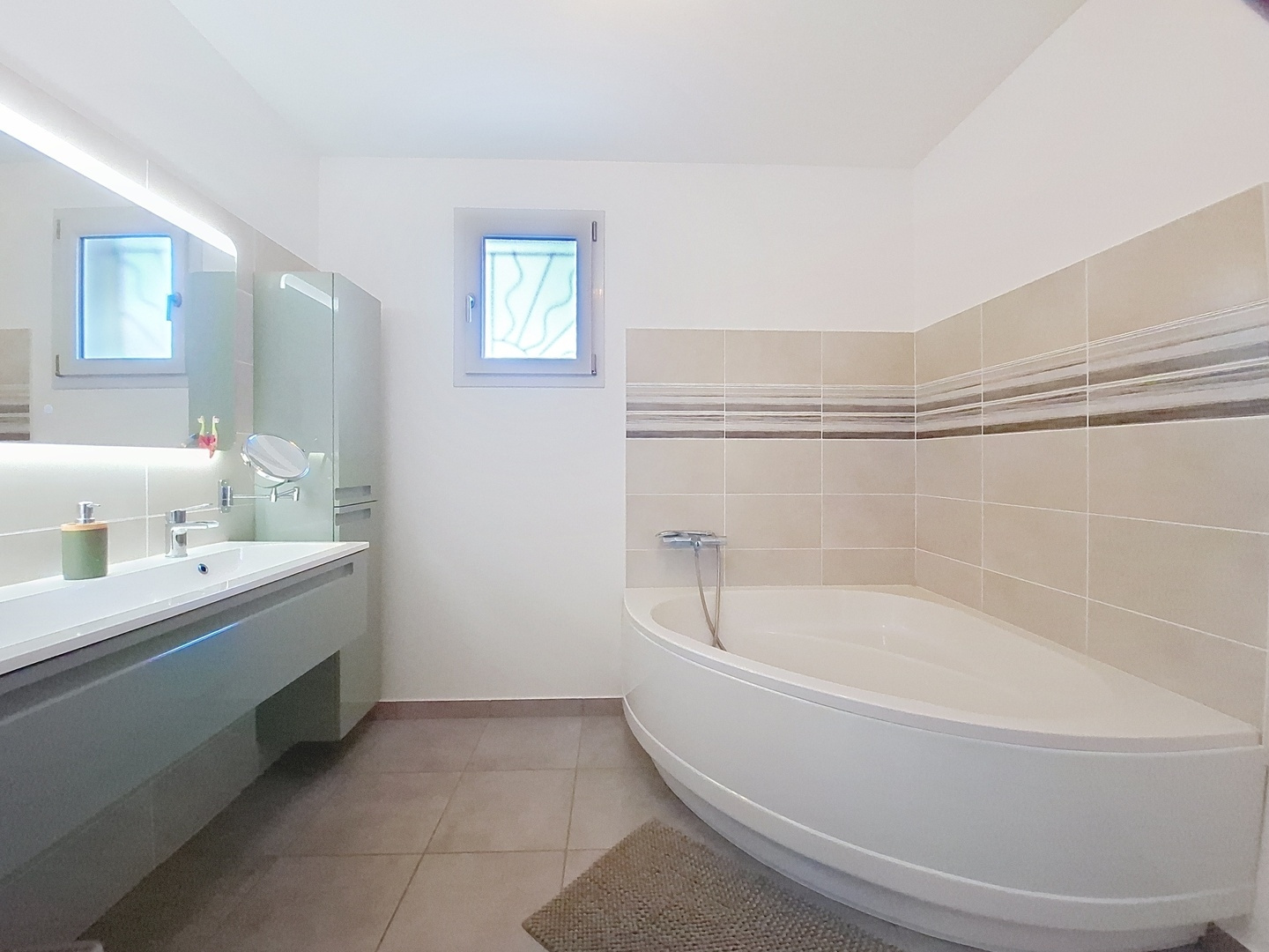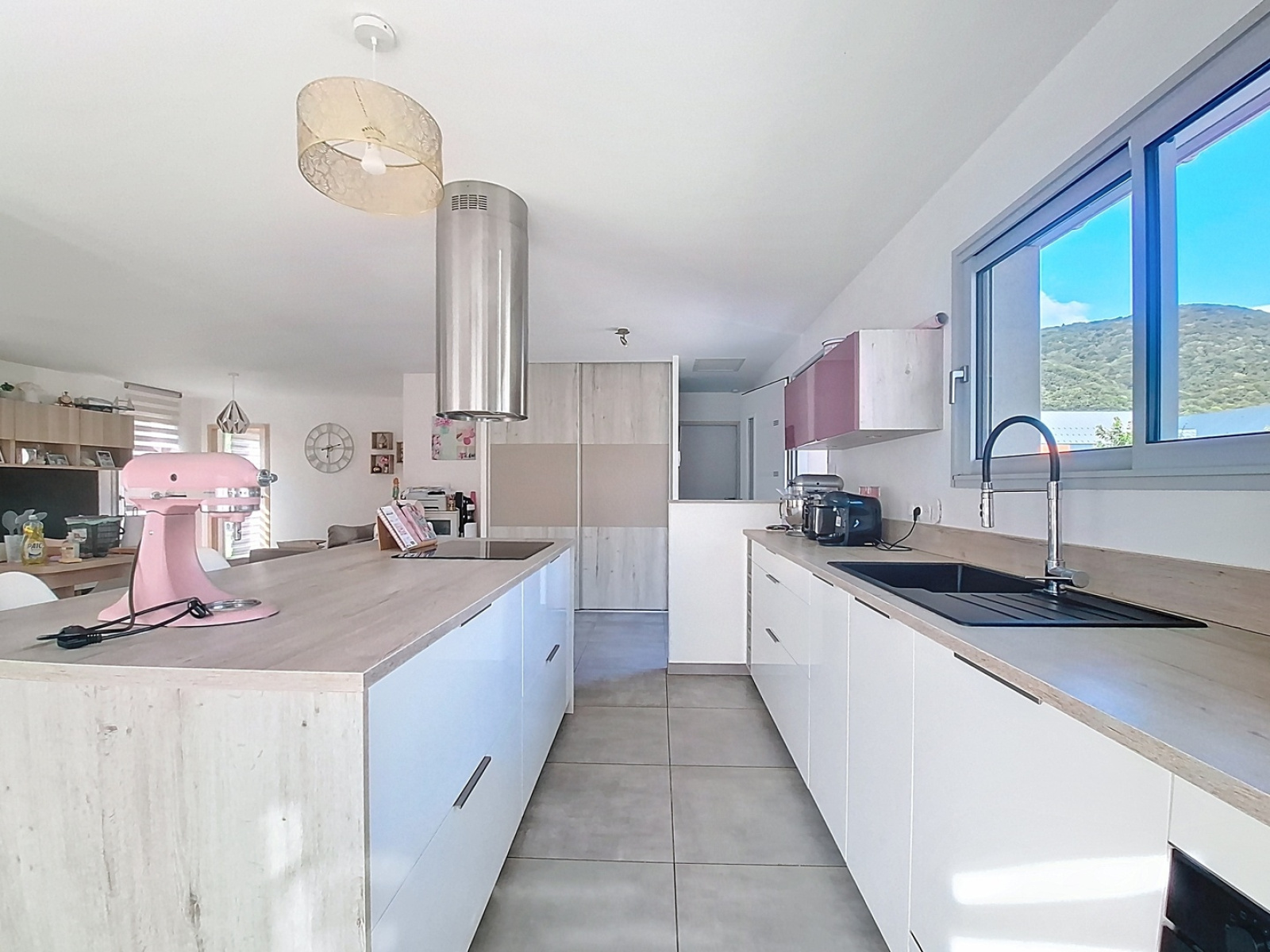 Les plus : maison en RT 2012, panneaux photovoltaïques, pompe à chaleur, adoucisseurs d'eau, visiophone, volets électriques programmables, menuiseries alu DV