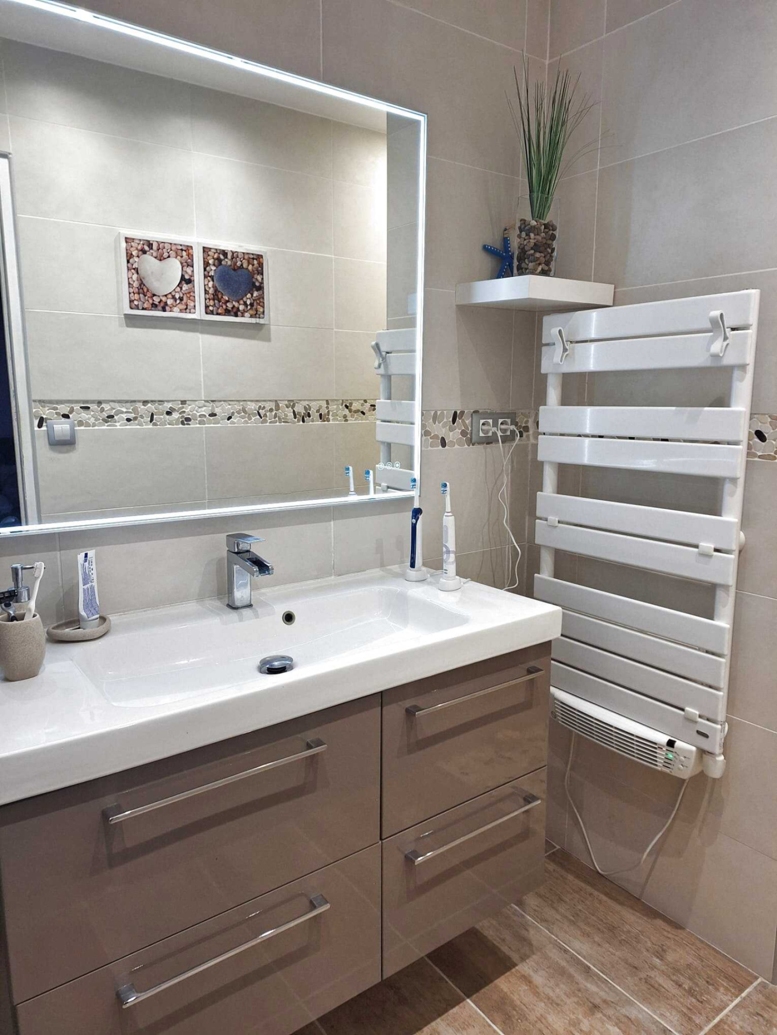 Côté confort : Plancher rayonnant électrique avec programmateur / Production eau chaude par cumulus electrique 200L VMC Simple Flux Auto réglabe