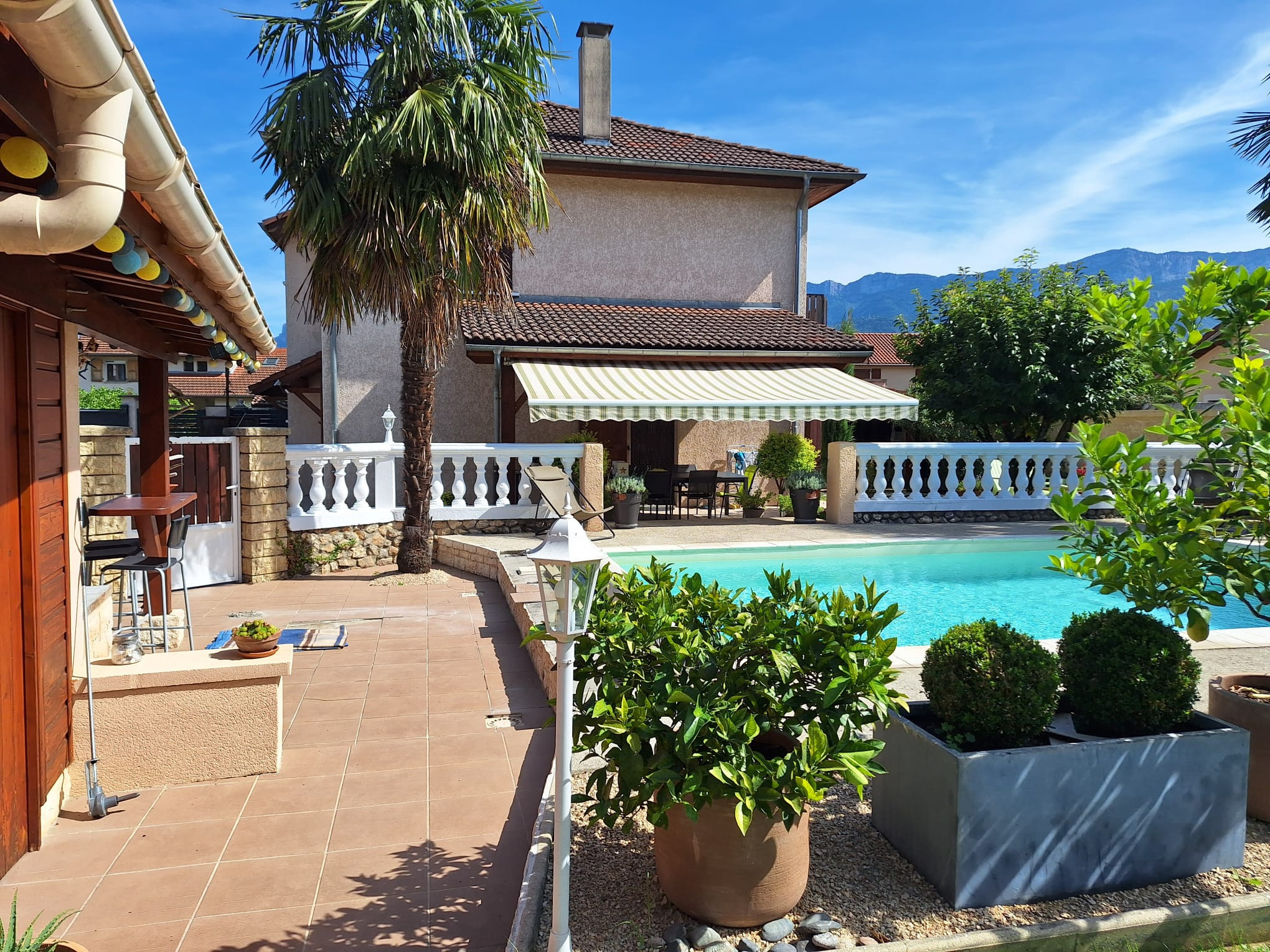 Édifiée en 2002 sur un terrain clos et arboré de 560 m2, elle offre un extérieur soigné avec piscine, un pool house aménagé idéal pour profiter des beaux jours en toute tranquillité.