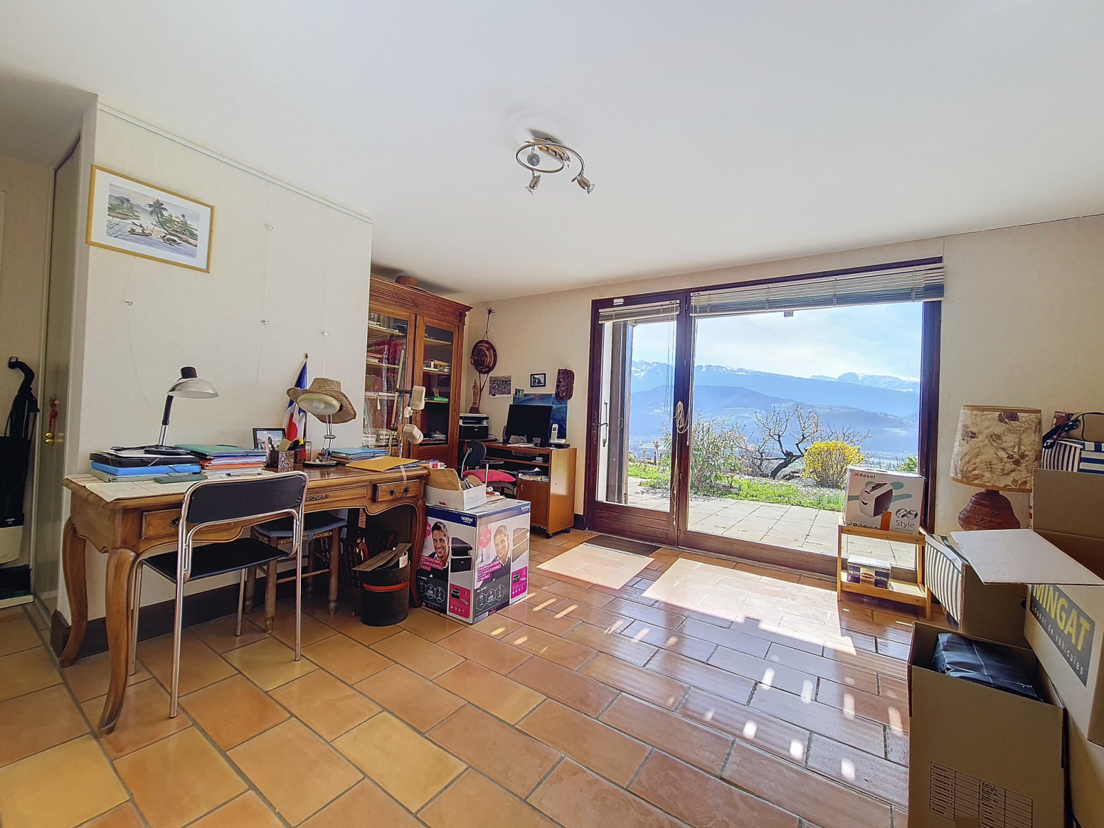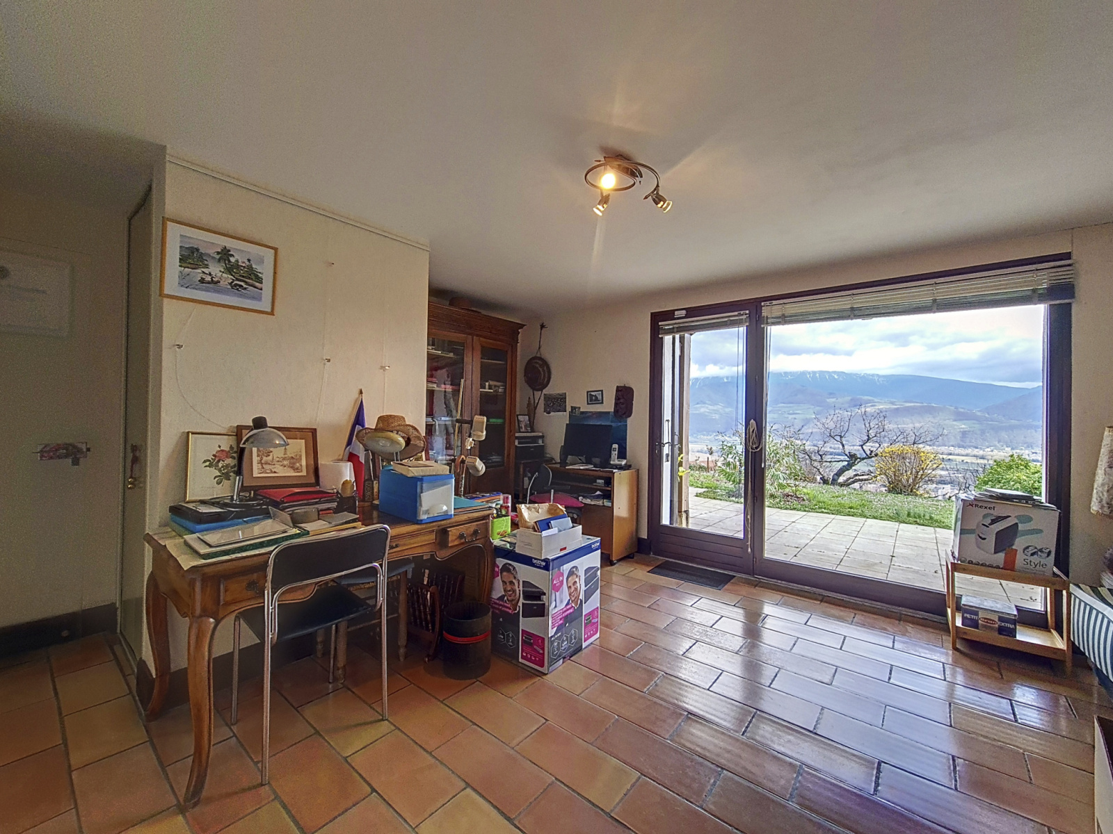 Au 1er étage vous profiterez d'un double séjour / salle à manger donnant sur une terrasse avec vue panoramique sur la chaine de Belledonne, d'une cuisine séparée pouvant être ouverte donnant sur le jardin coté Sud, d'une chambre, d'une salle de bain et d'un wc séparé.